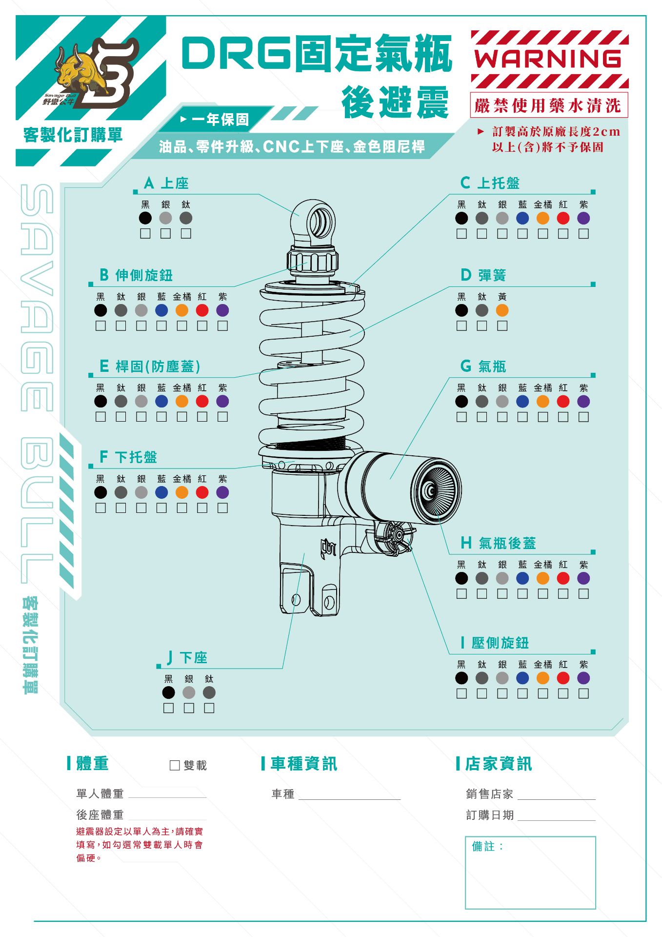 野蠻公牛XPS固定氣瓶後避震DRG/曼巴