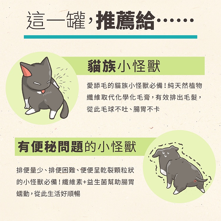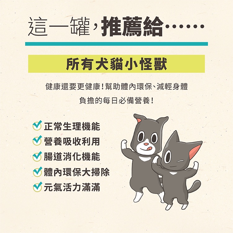 💡 適用所有犬貓寶貝、消化不良的寶貝、幫助體內環保、減輕身體負擔的每日必備營