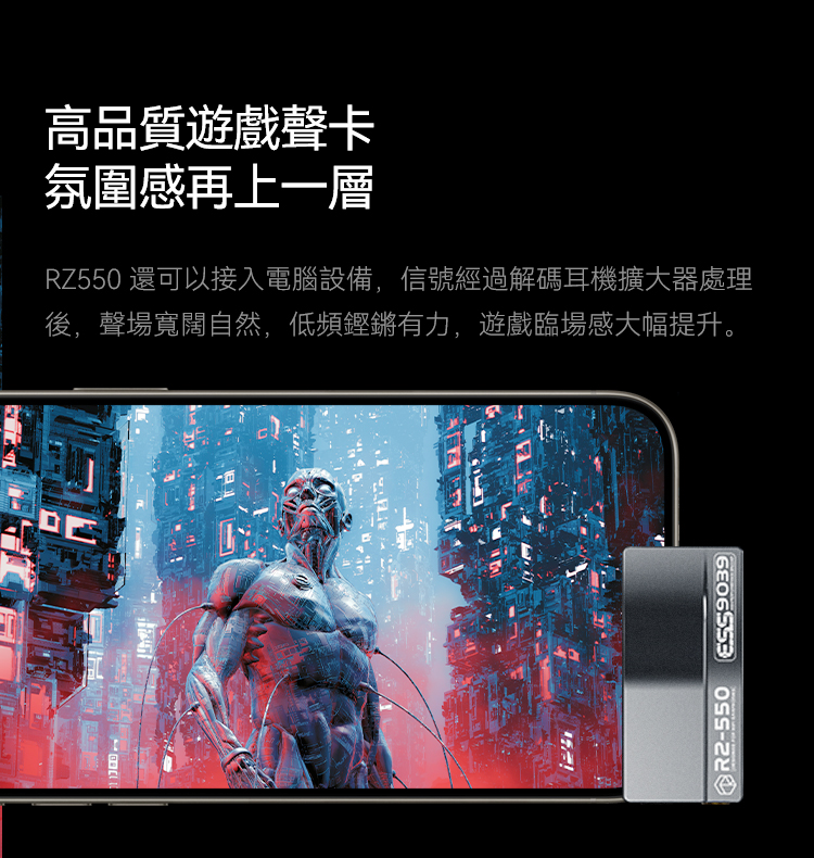 RZ550 還可以接入電腦設備,信號經過解碼耳機擴大器處理後,聲場寬闊自然,低頻鏗鏘有力,遊戲臨場感大幅提升。