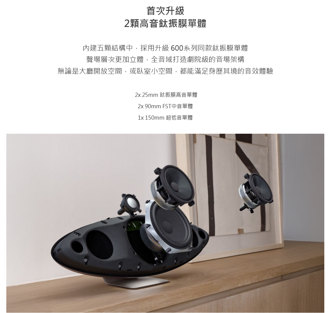 內建五顆結構中,採用升級 600系列同款鈦振膜單體
