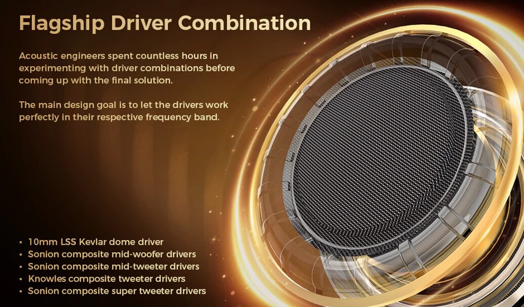 LETSHUOER為Cadenza 12提供了頂級的強大單體配置,採用傳統的DD+BA單體組合,每側12個單體組合。 他們採用了 10 毫米矽膠環繞動圈,搭配 11 個高性能 Knowles 和 Sonion 動鐵。