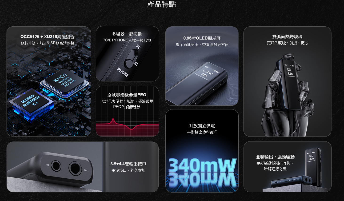 並聯輸出 強力驅動    |   將耳擴輸出進行並聯,強力提升3.5mm單端輸出功率,更好驅動低阻抗耳機,讓你聆聽Hi-Fi之聲。