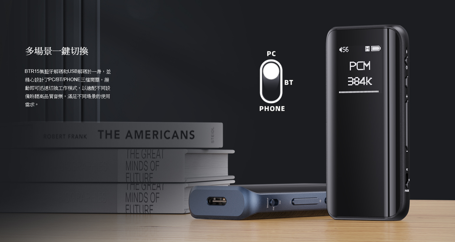 多場景一鍵切換   |   精心設計PC/BT/PHONE三檔開關,撥動即可迅速切換模式,以搭配不同設備聆聽高品質音樂,滿足不同場景的使用需求。