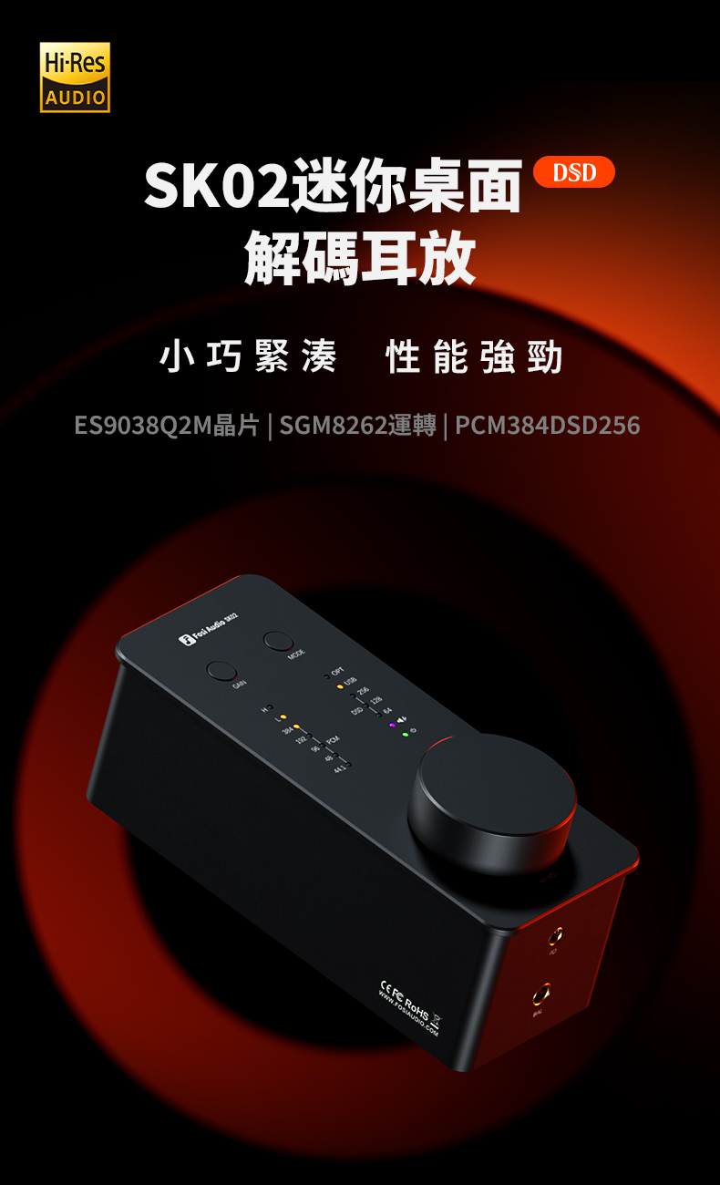 SK02 採用了 ESS Technology 的 ES9038Q2M DAC 晶片。 這款32bit立體聲DAC是一款專為發燒友應用而設計的高效能晶片。 它基於 HyperStream II 架構,使 Fosi Audio SK02 能夠支援 32-bit/384kHz PCM 和高達 DSD256 的原生 DSD 串流。