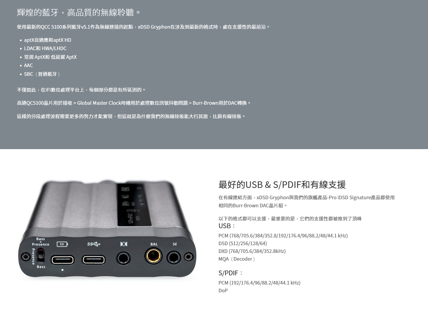 使用最新的QCC 5100系列藍牙v5.1作為無線連接的起點,xDSD Gryphon在涉及到最新的格式時,處在支援性的最前沿。