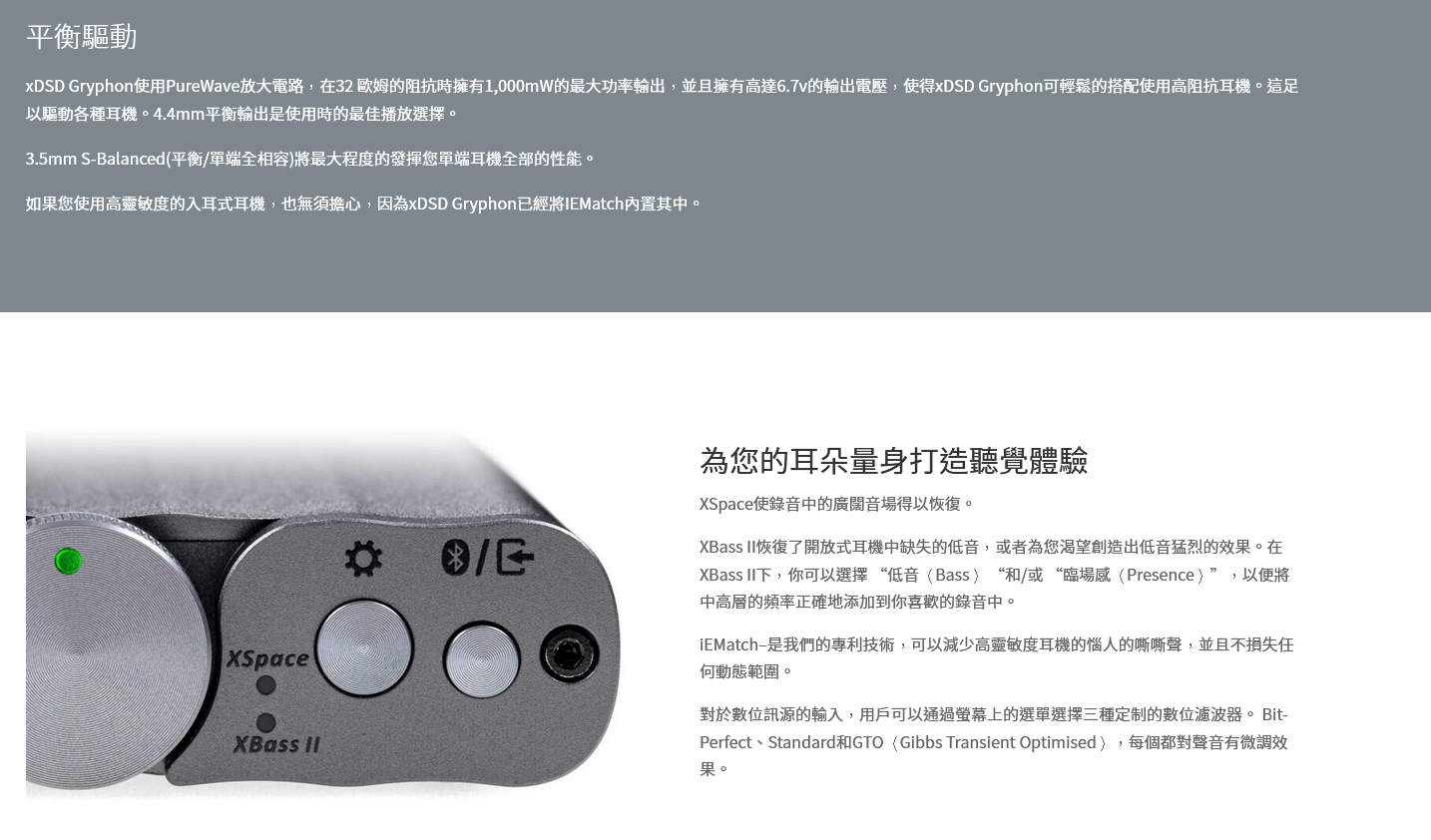 如果您使用高靈敏度的入耳式耳機,也無須擔心,因為xDSD Gryphon已經將IEMatch內置其中。