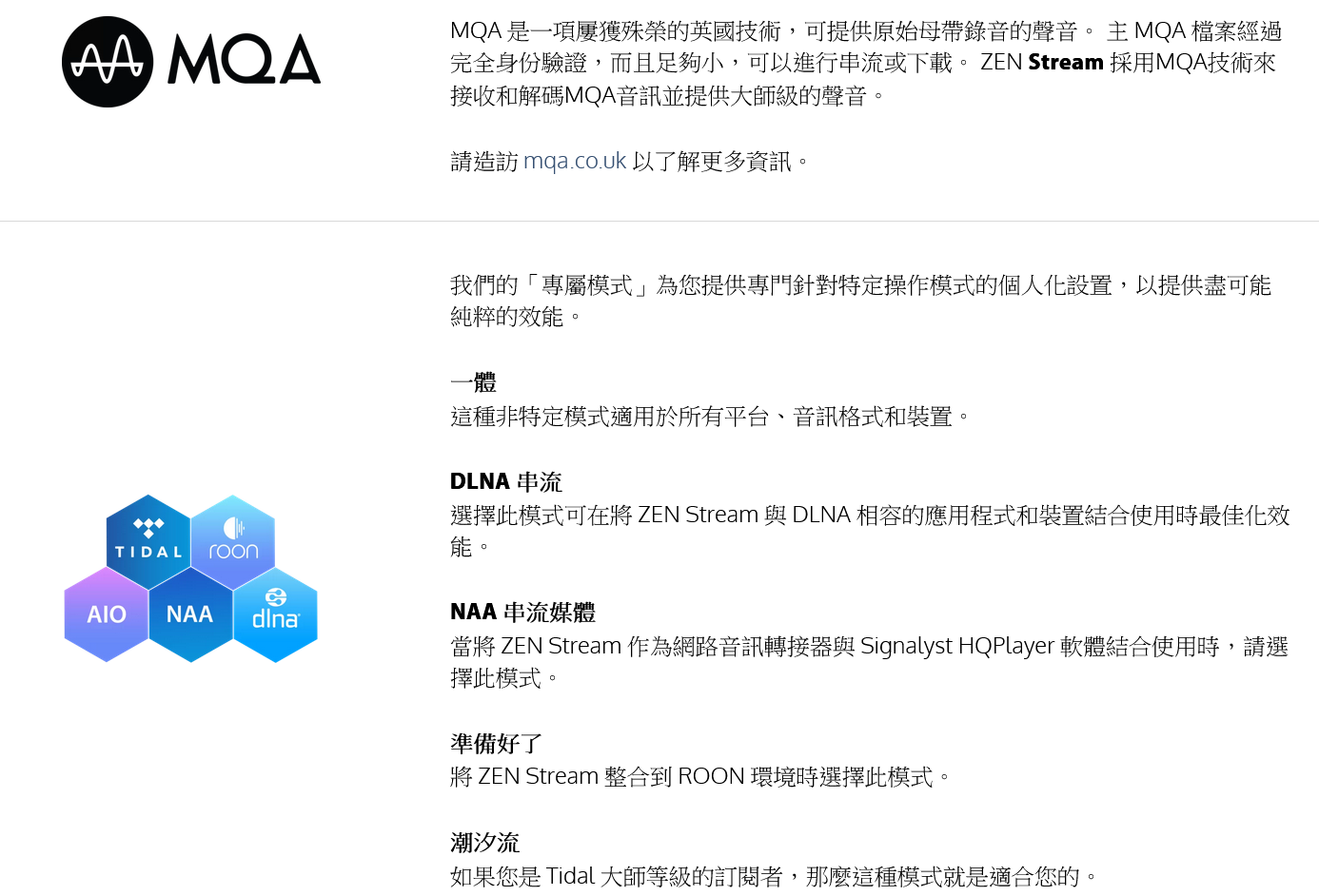 這些便是“為什麼ZEN Stream可以在 LAN和 WiFi (802.11n,100Mbps,5Ghz)連接下,都能通過USB支援至32bit/384kHz PCM和DSD256傳輸,通過SPDIF(同軸)支援至192kHz PCM傳輸,並支援MQA檔案傳輸”的原因。