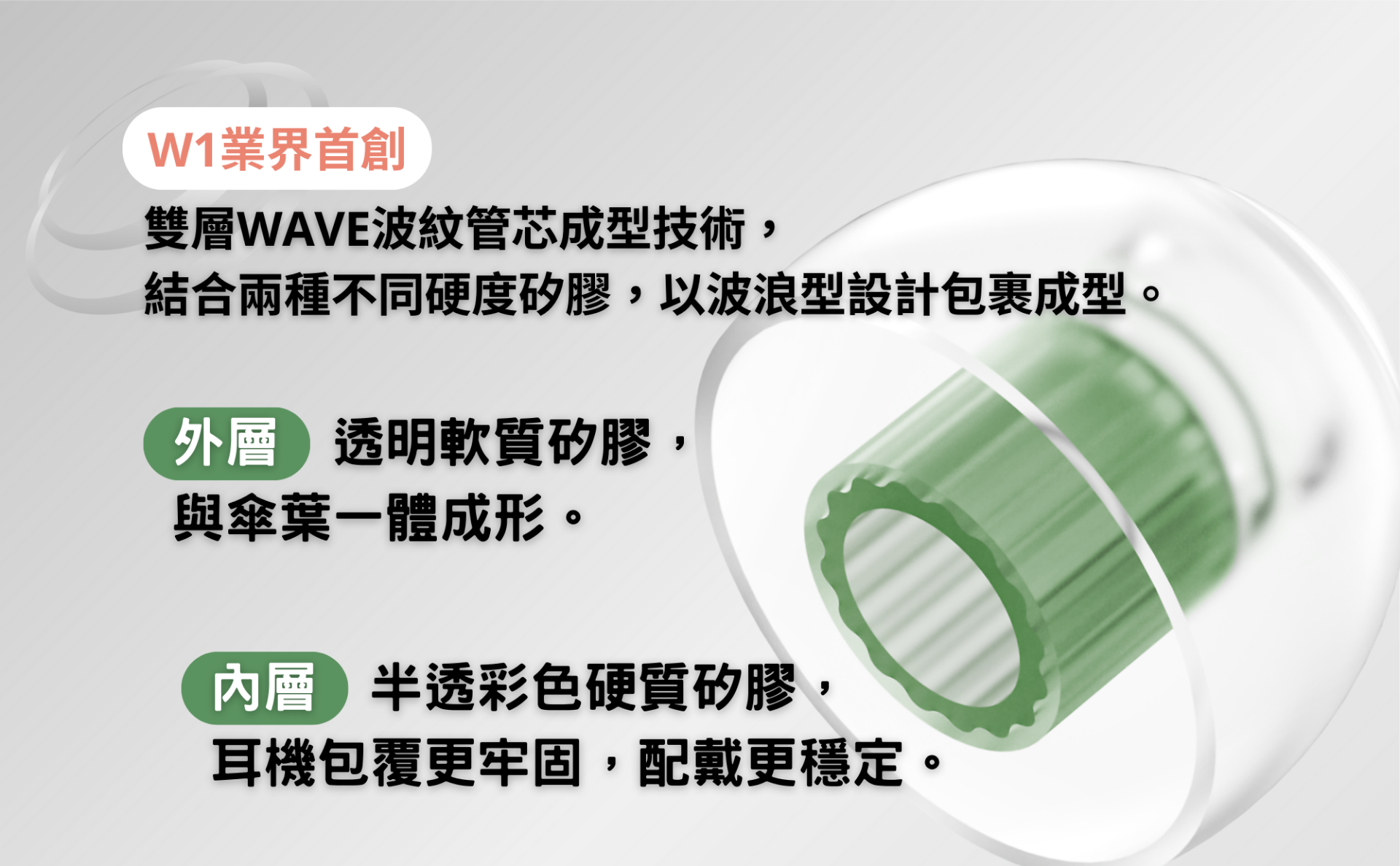 • 業界首創雙層WAVE管芯成型技術,耳塞包覆性強