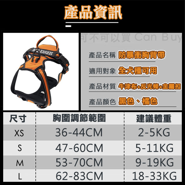 體重建議:XS(2-5kg)、S(5-11kg)、M(9-19kg)、L(18-33kg)
