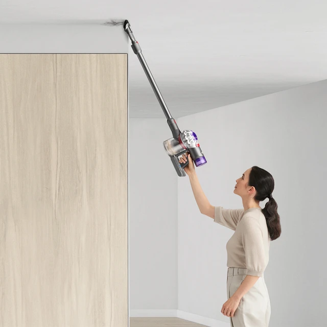 Dyson SV25 V8 全新升級配件 新一代無線吸塵器 商品特色 ★ 40分鐘續航-鋰電池科技: 電池續航力增強,充電5小時,一般模式最高可使用40分鐘 ,使用電動吸頭25分鐘,強力模式5分鐘 。 ★第八代戴森數位馬達: 轉速更高達每分鐘110,000轉,425W 功率,高效能無線吸塵器。 ★ 2 Tier Radial™ 雙層多圓錐氣旋科技: 15個圓錐氣旋上下層並排運轉,產生高達47,000g的離心力,持續提供強勁吸力。 ★ 全新無纏結錐型吸頭:配有專為清潔毛髮設計的錐型吸頭,錐形刷條配合傾斜的刷毛,讓毛髮能夠「移動」到刷條上,然後從尖端滑入集塵筒中。 ★ 一鍵清空集塵筒:將集塵筒上方紅色卡榫輕輕上拉即可打開塵蓋傾倒垃圾,方便不沾手。 ★ 人體工學設計,將馬達重心擺在握柄,更易掌握,方便清理樓梯、壁櫥、窗簾、天花板。 全新上市 高效除蟎, 配備無纏結技術 99.9%除蟎率 為全方位清潔打造 軟質碳纖維滾筒吸頭 抗靜電軟絨毛刷同時吸走微塵及碎屑 組合兩個吸頭扁平吸頭和刷頭,可在家居 快速吸除難以到達之處的塵垢和過敏原, 您知道嗎 塵蟎及其糞便也存在於車內座椅,兒童安全椅, 若清潔不到位,易成為過敏原滋生的溫床。 車內後車廂 車內座椅隙縫 全機密封過濾系統有效捕捉 99.99%小至 便利收納並為您的Dyson V8 吸塵器與 2在2020年,獨立第三方SGSIBR美國實驗室依據ASTM F197704測試強效模式下的過濾效果。