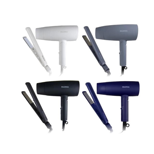 SALONIA 負離子美髮造型套組(吹風機+直捲兩用造型夾)(多色可選/一年保固)