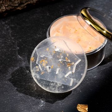 祈福金箔檀香皂它結合了胺基酸成分及潔淨的24K金箔與馥郁的檀香精油,旨在為使用者的日常生活帶來祈福與圓滿。
