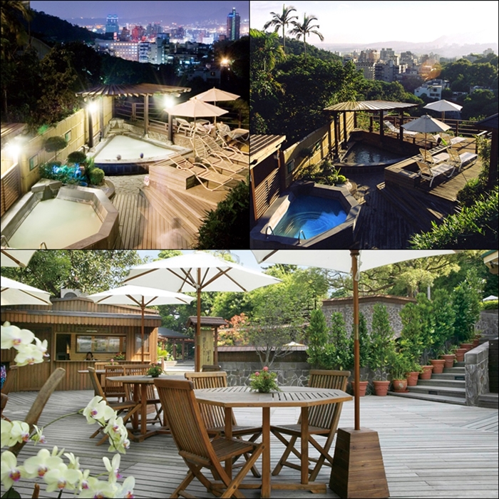 占地廣大的戶外『露天風呂』,SPA水療設施包括冷泉花瓣浴、石板浴、超音波浴、氣泡浴、衝擊浴、寢浴、浮浴、親子戲水池、八角靜態池共9大浴池,滿足各式需求,夜晚還可眺望北投繁榮夜景。