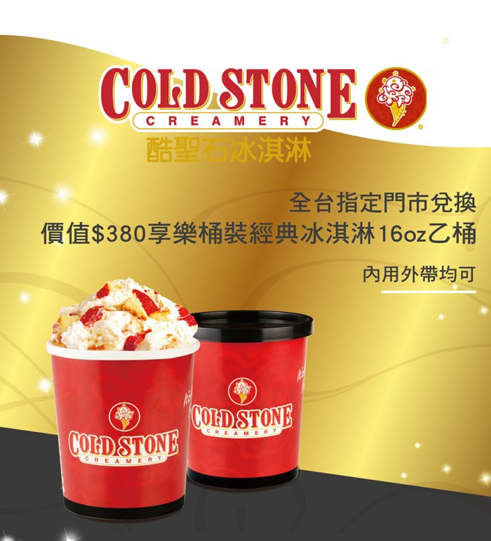 • 最新指定門市資訊請洽COLD STONE官網或查詢最新消息為主