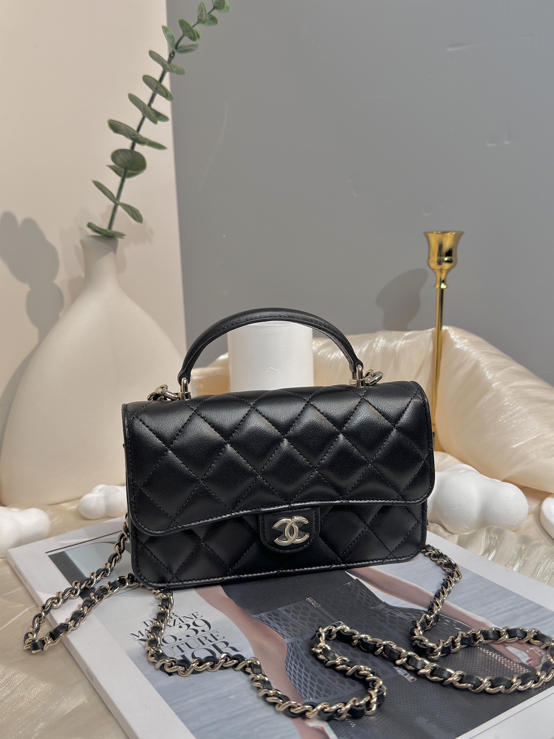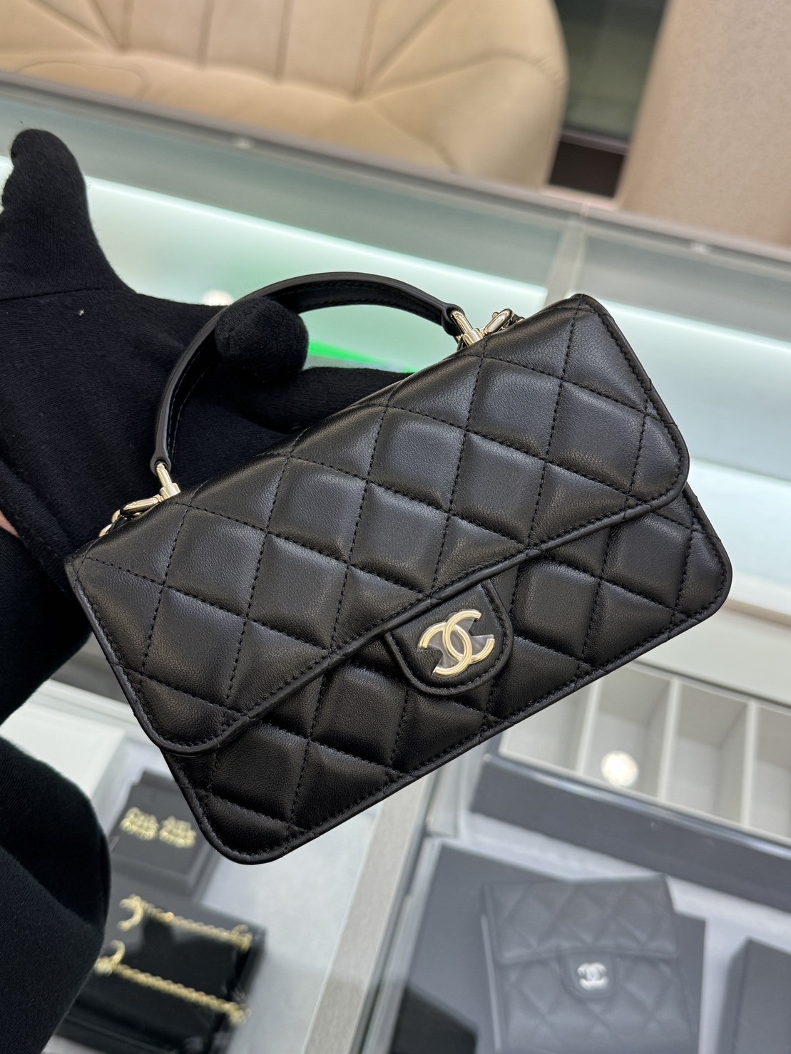 現貨不用等! CHANEL 黑金手柄鍊條手機包