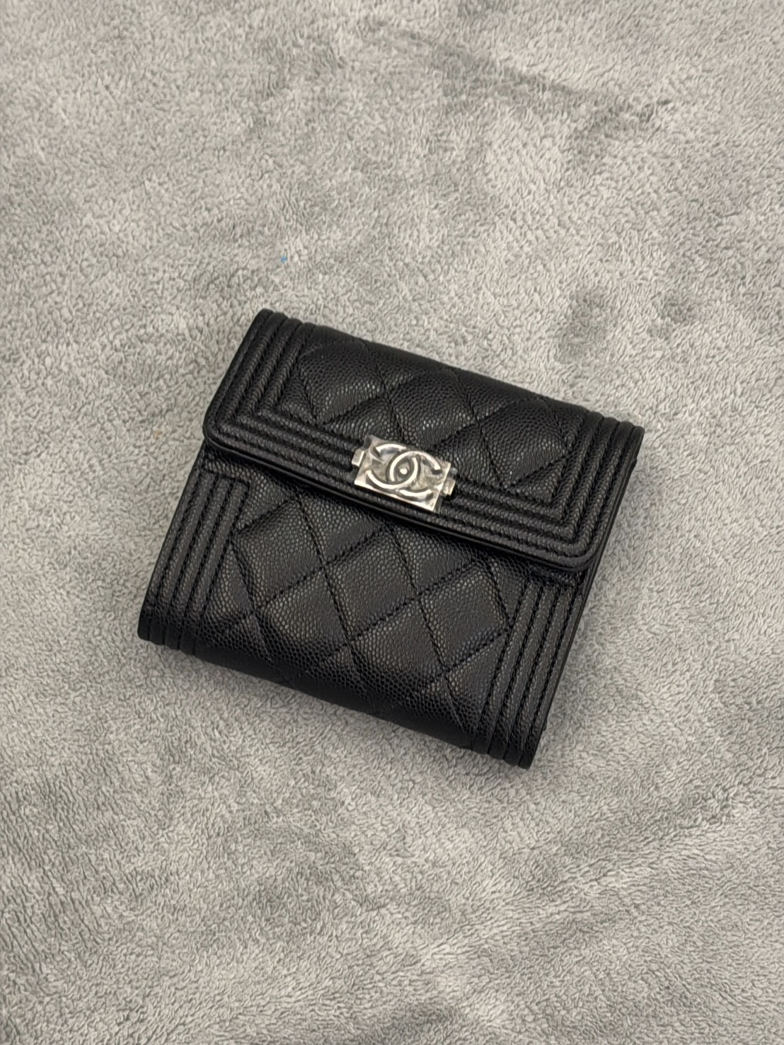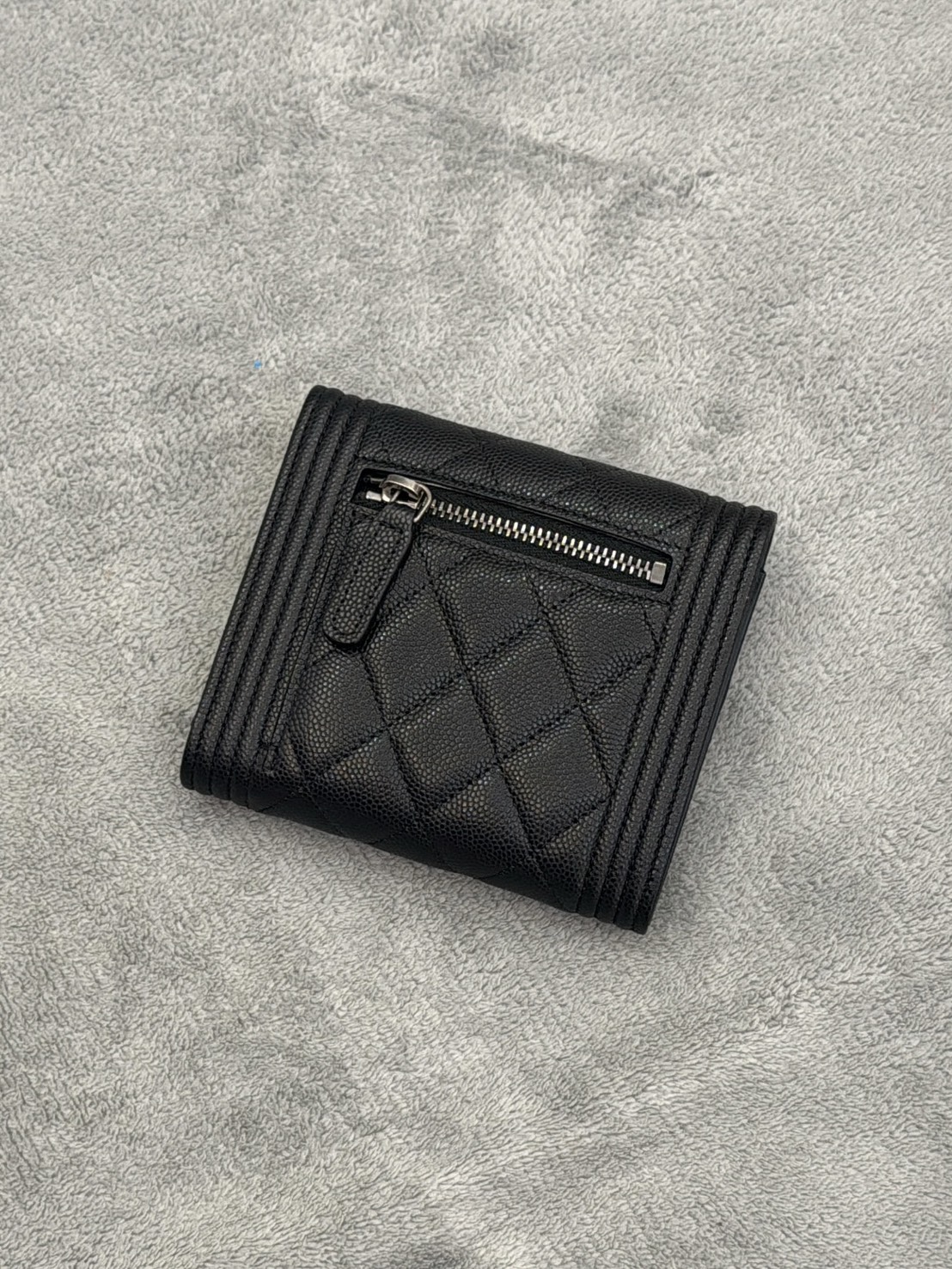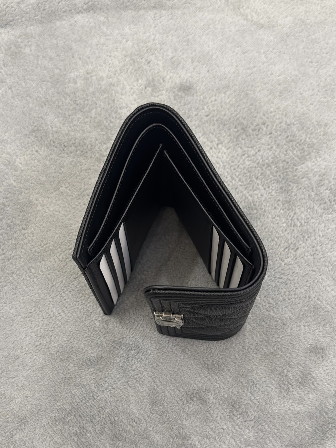 現貨不用等 !Leboy系列 黑銀荔枝牛皮三折短夾
