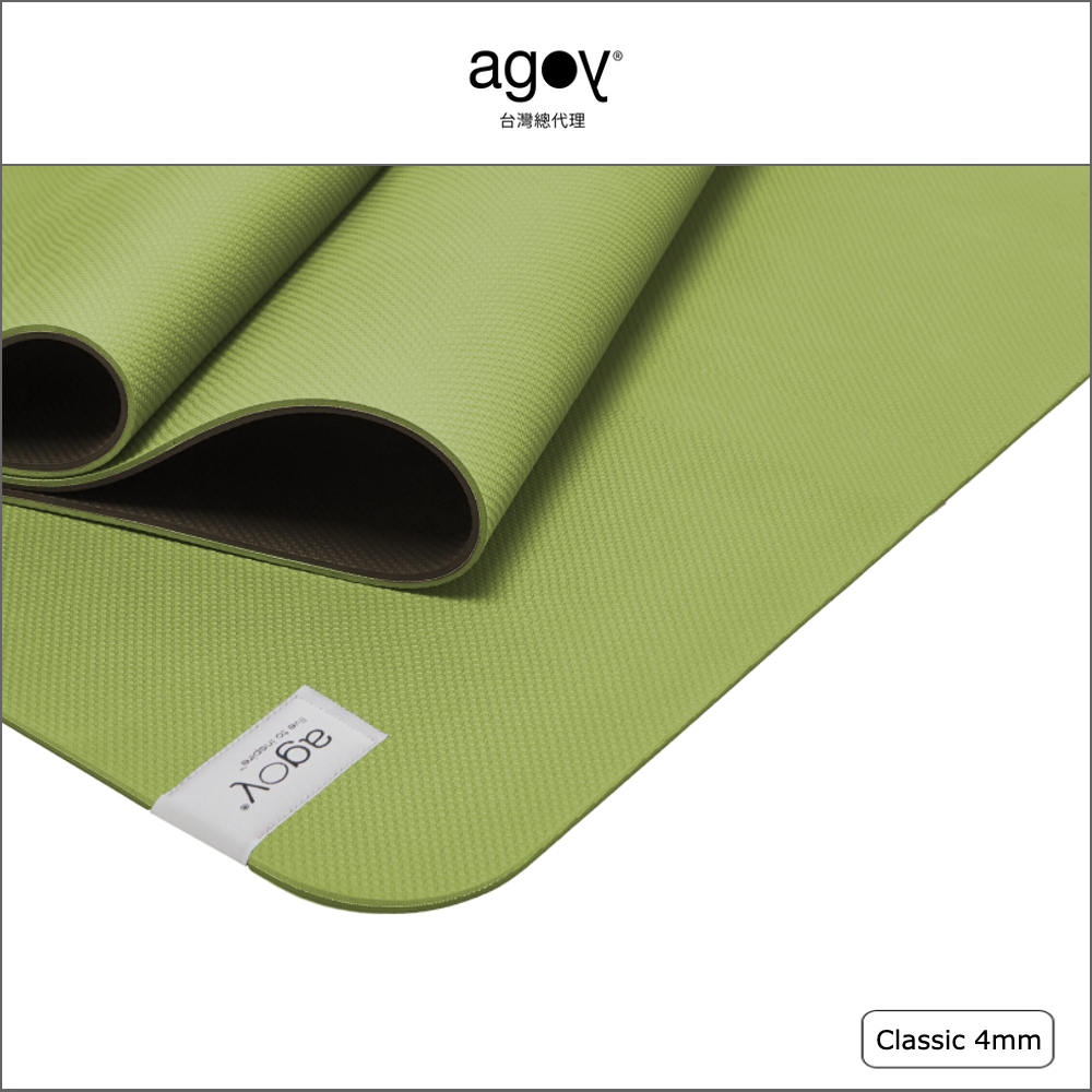 agoy在2003年即成為全世界唯二最早將TPE應用在瑜伽墊的公司之一,而台灣在TPE材料的運用在全世界扮演了一個關鍵的地位,20年來已經有無數的TPE材質瑜伽墊販售至世界的各個角落,而在這個同時,也有為數不少的瑜伽墊在製作時因小小的誤差而遭到淘汰,可能是顏色,也可能是紋路,種種的原因而在這裡留下成為環境的負擔,因此agoy的創辦人Howard於2010年開始,以其在綠色時尚設計的背景,將這些功能完好如初但遭淘汰的材料upcycle再設計成新的商品,以減少廢棄材料的產生,第一個作品便是大家所熟知的雙極致瑜伽墊,也就是現在市場上常見到的PU材質瑜伽墊,甫推出即受到關注環保的瑜伽者們極大的回響。