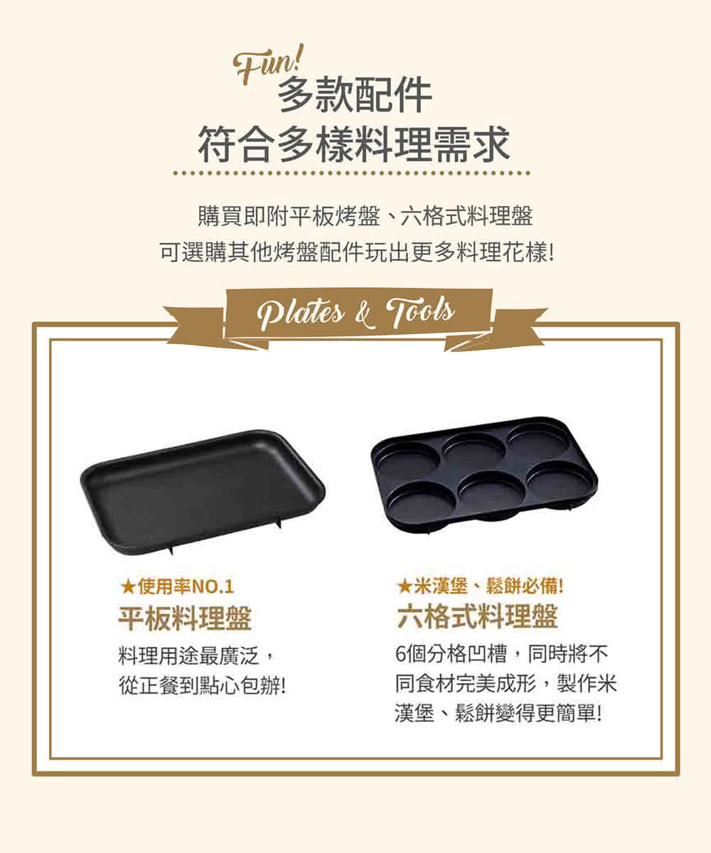 ●兩種不沾烤盤,牛排或章魚燒皆適合