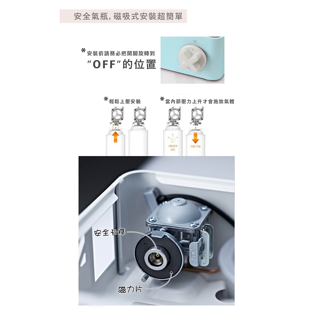 ●磁吸式上罐,過壓退罐安全機制