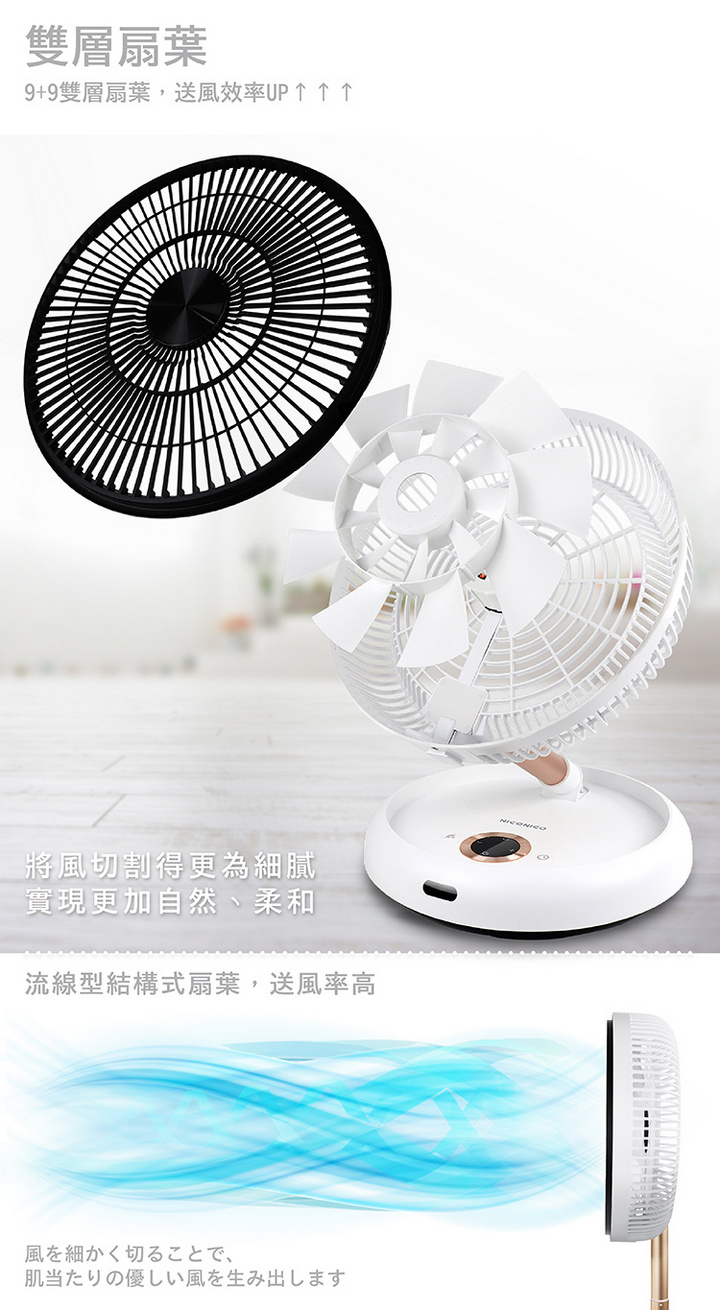 【NICONICO】 12吋美型DC摺疊遙控循環扇