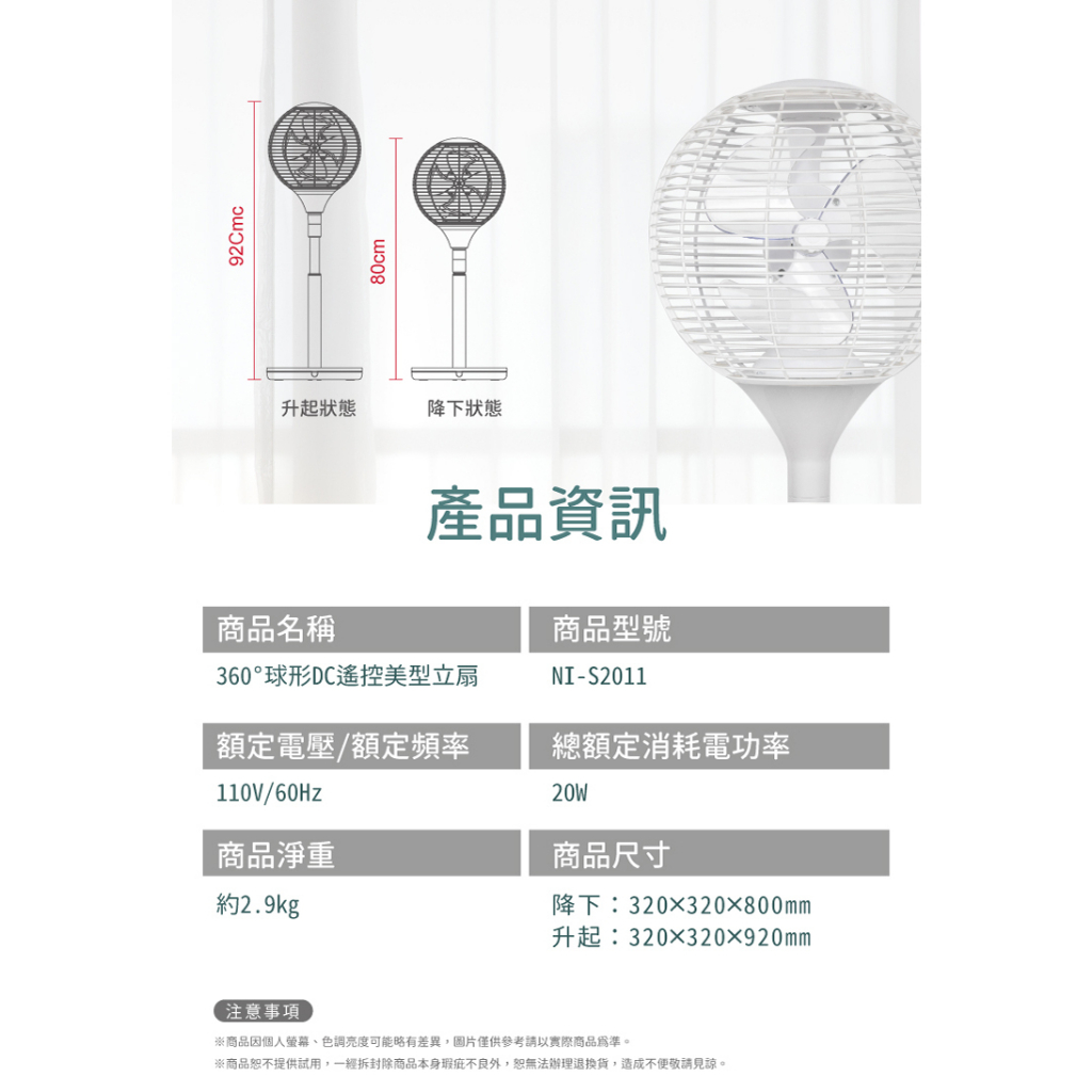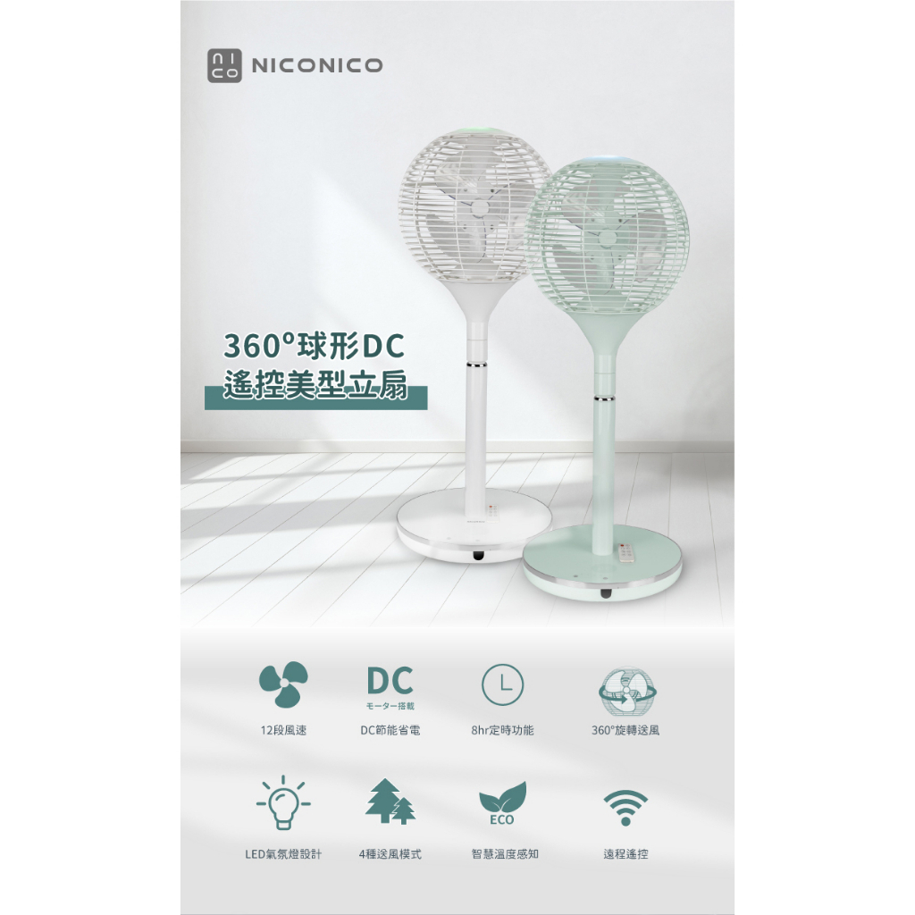 商品名稱:NICONICO 360度球形DC遙控美型立扇NI-S2011