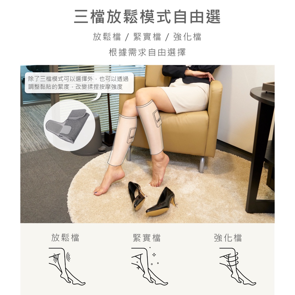 。三檔放鬆模式:放鬆檔、緊實檔、強化檔