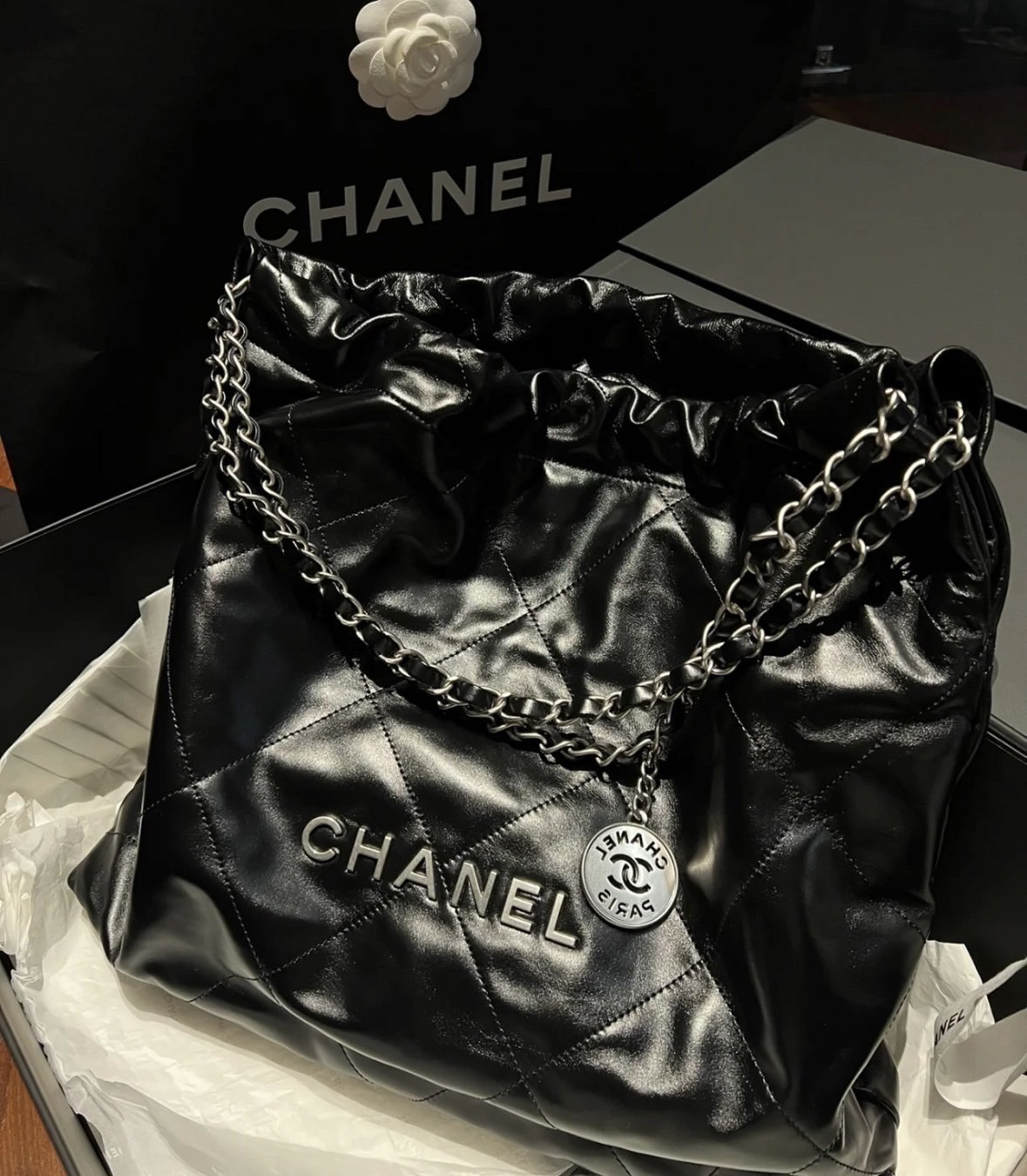 Chanel 22 黑銀中號
