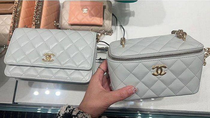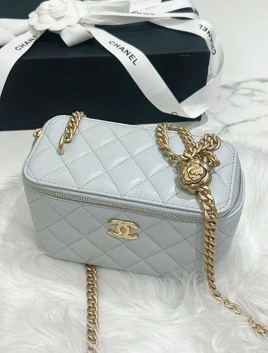 Chanel 山茶花調節鍊 小盒子包 珍珠灰