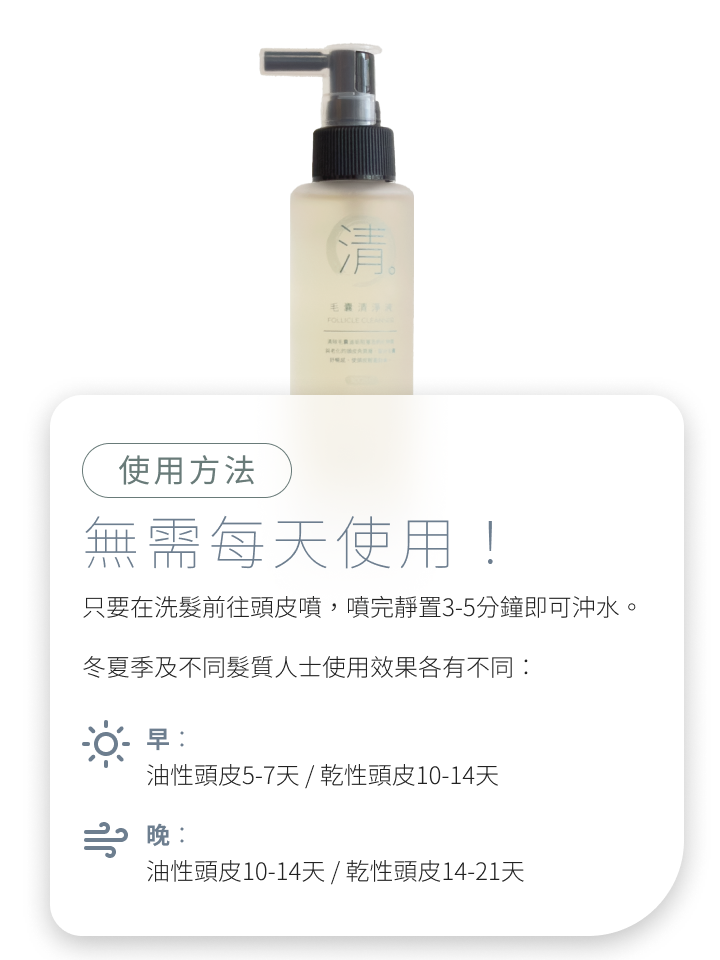 👉洗前|毛囊清淨液:做前置深度清潔,帶走毛孔堆積的油脂與髒污,讓清潔更到位、洗後更清爽。