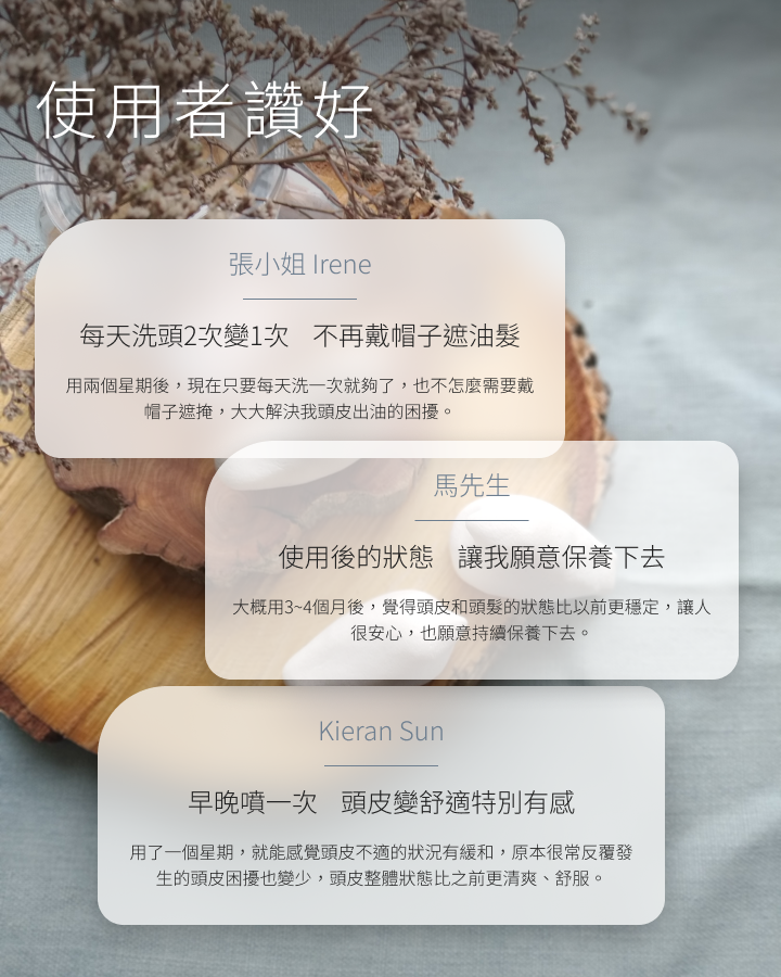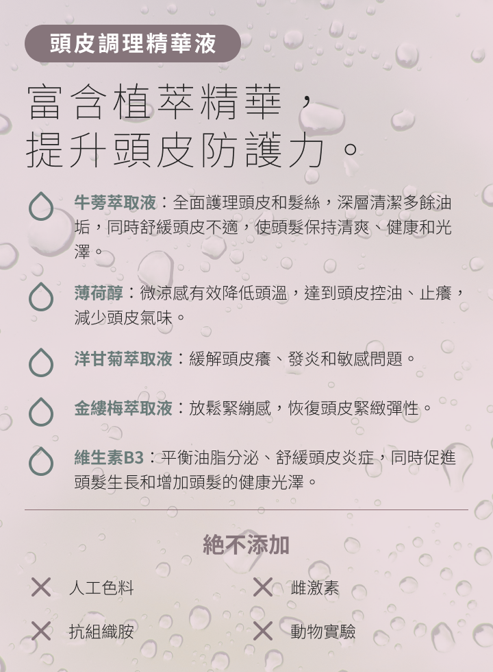 👉洗後|頭皮調理精華液:洗完補上滋養與日常調理,維持頭皮舒適度與穩定感,讓狀態不容易反覆。