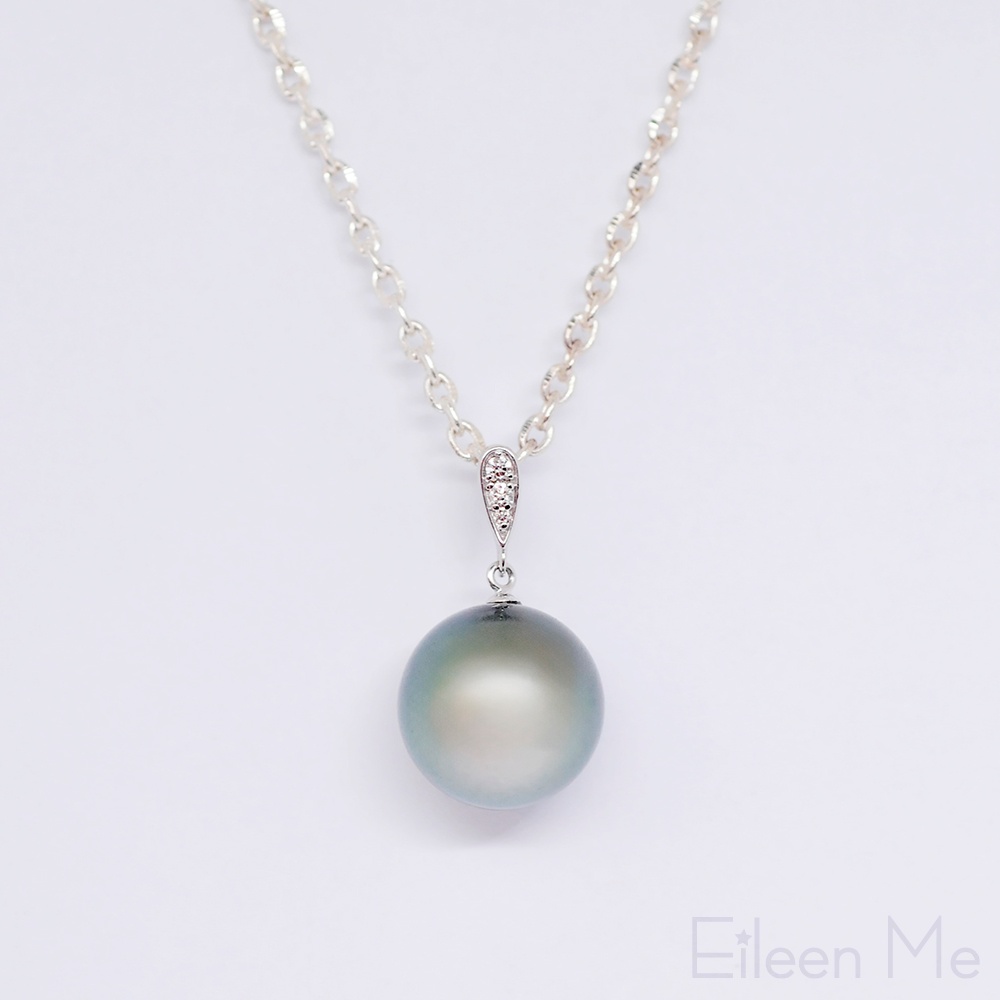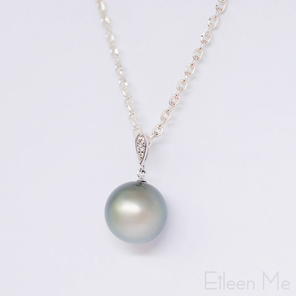 【ISOWA】春日海 12mm AKOYA珍珠 黑蝶真珠 天然珍珠 鑲鑽 18K金 吊墜 不含鍊