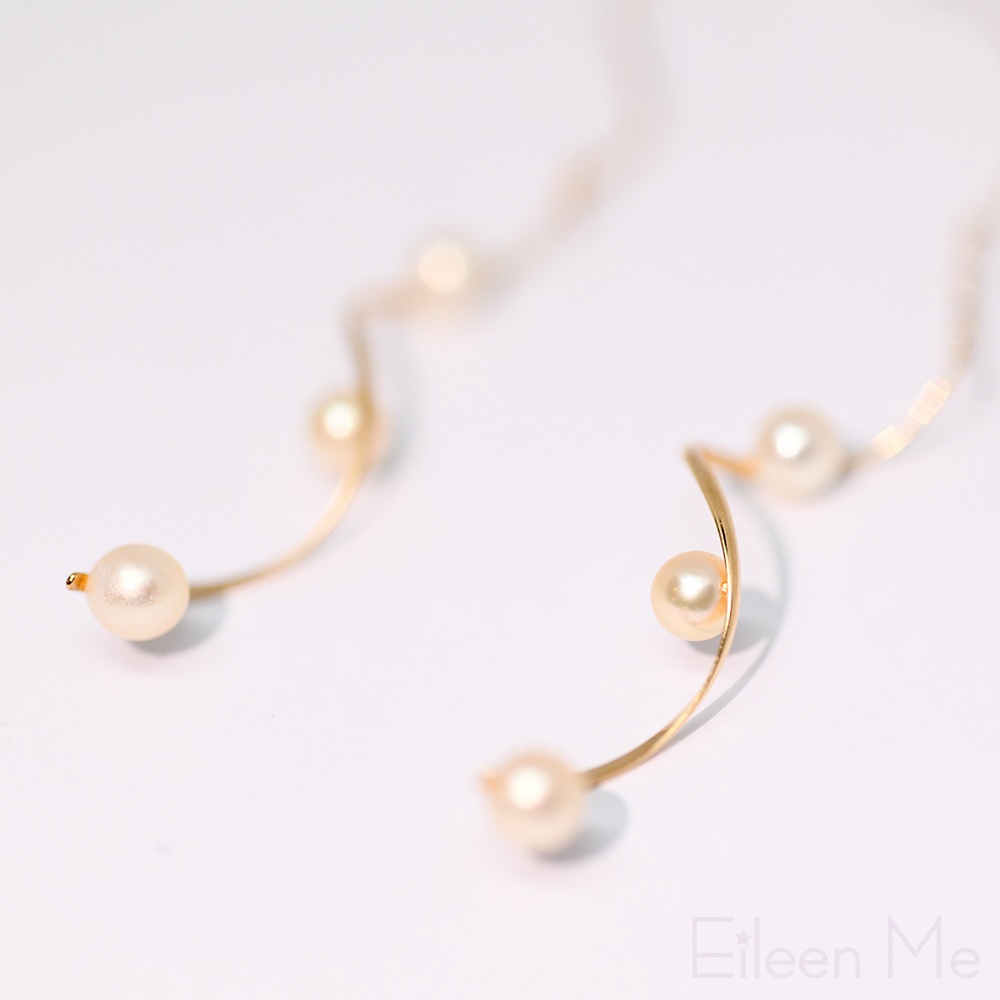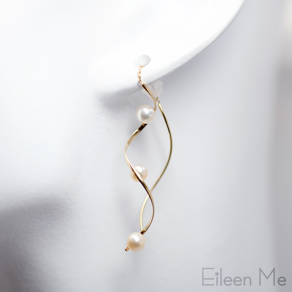 【ISOWA】梧桐 AKOYA 天然珍珠 流線型 垂墜耳環 18K金耳針