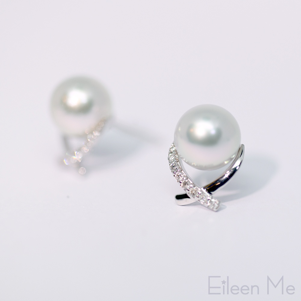 【ISOWA】清澈 7.5mm AKOYA珍珠 無調藍 天然珍珠 鑲鑽 耳環 18K金耳針