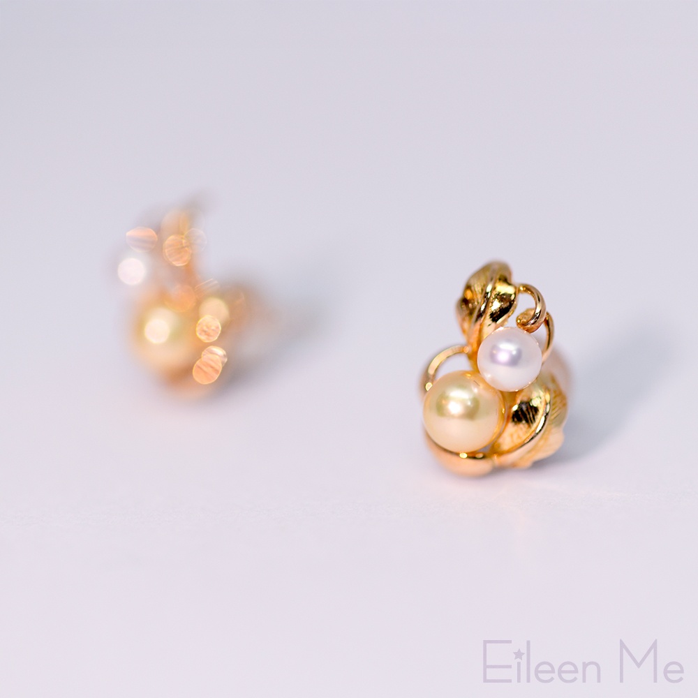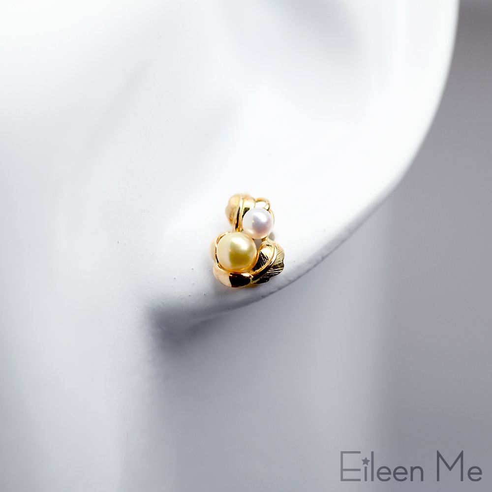 【ISOWA】秋光 4mm AKOYA珍珠 雙色天然珍珠 樹葉造型耳環 18K金耳針