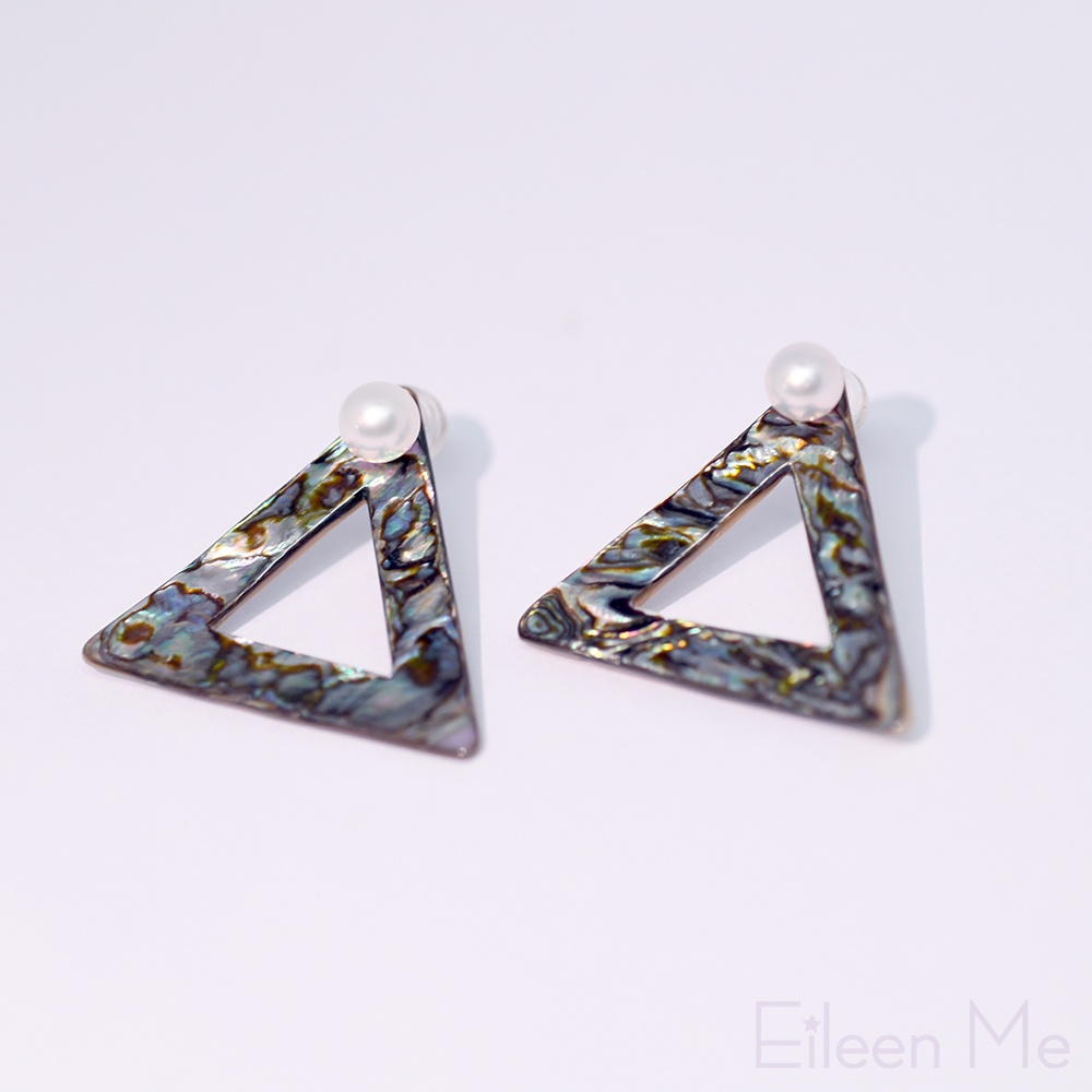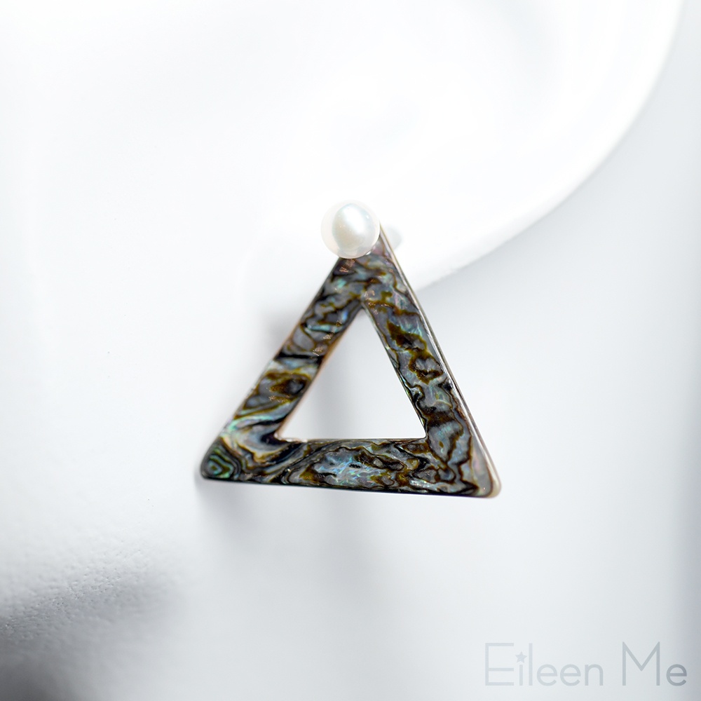 【ISOWA】貝貝 5mm AKOYA珍珠 白色 天然珍珠 三角造型 耳環 18K金耳針