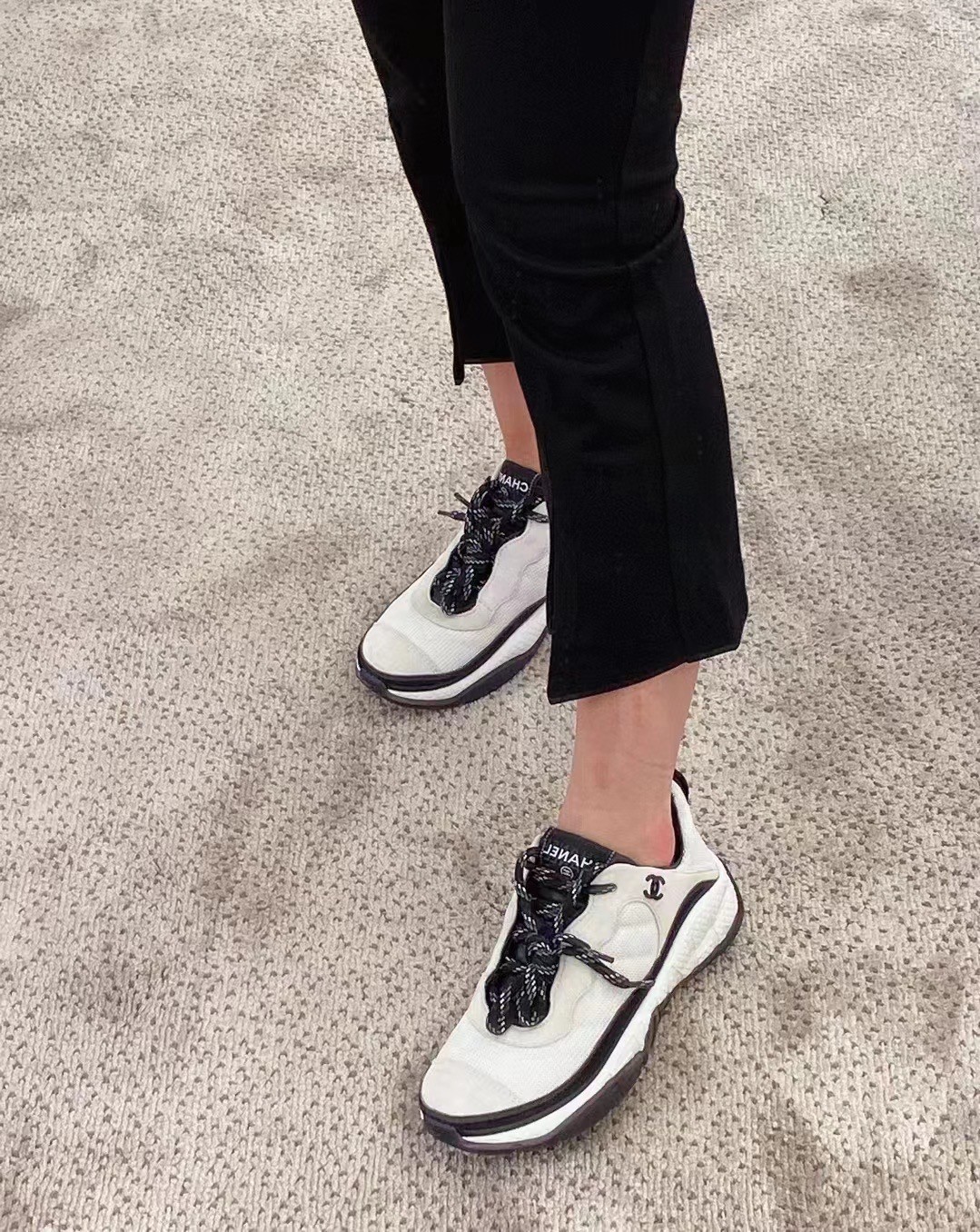 Chanel香奈兒 經典雙C LOGO 麂皮拼防水布氣墊運動鞋 熊貓鞋 米白/40.5碼