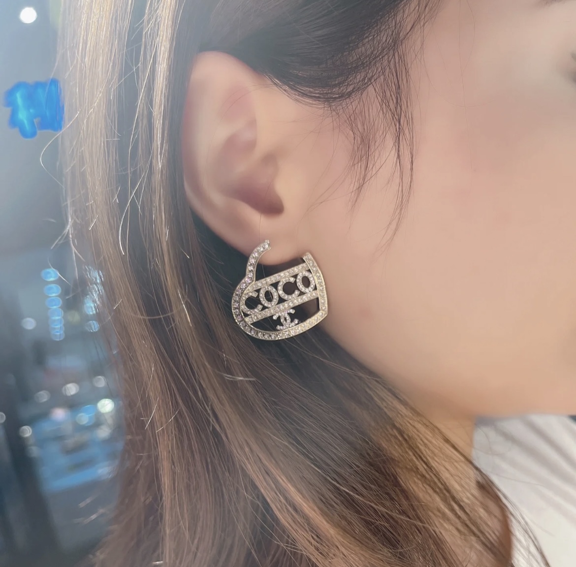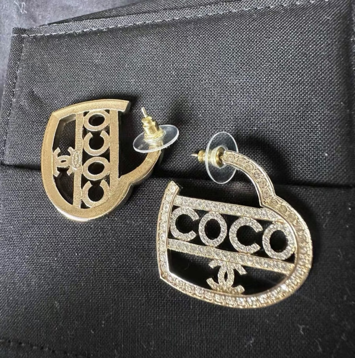 Chanel香奈兒 23B 水鑽雙愛心鏤空字母耳環