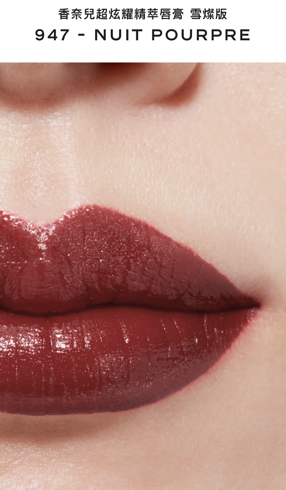 CHANEL 香奈兒彩妝 超炫耀精萃唇膏 雪燦版 2g 黑金管 #947紫夜 NUIT POURPRE - 紫棕色/2024聖誕節限量彩妝