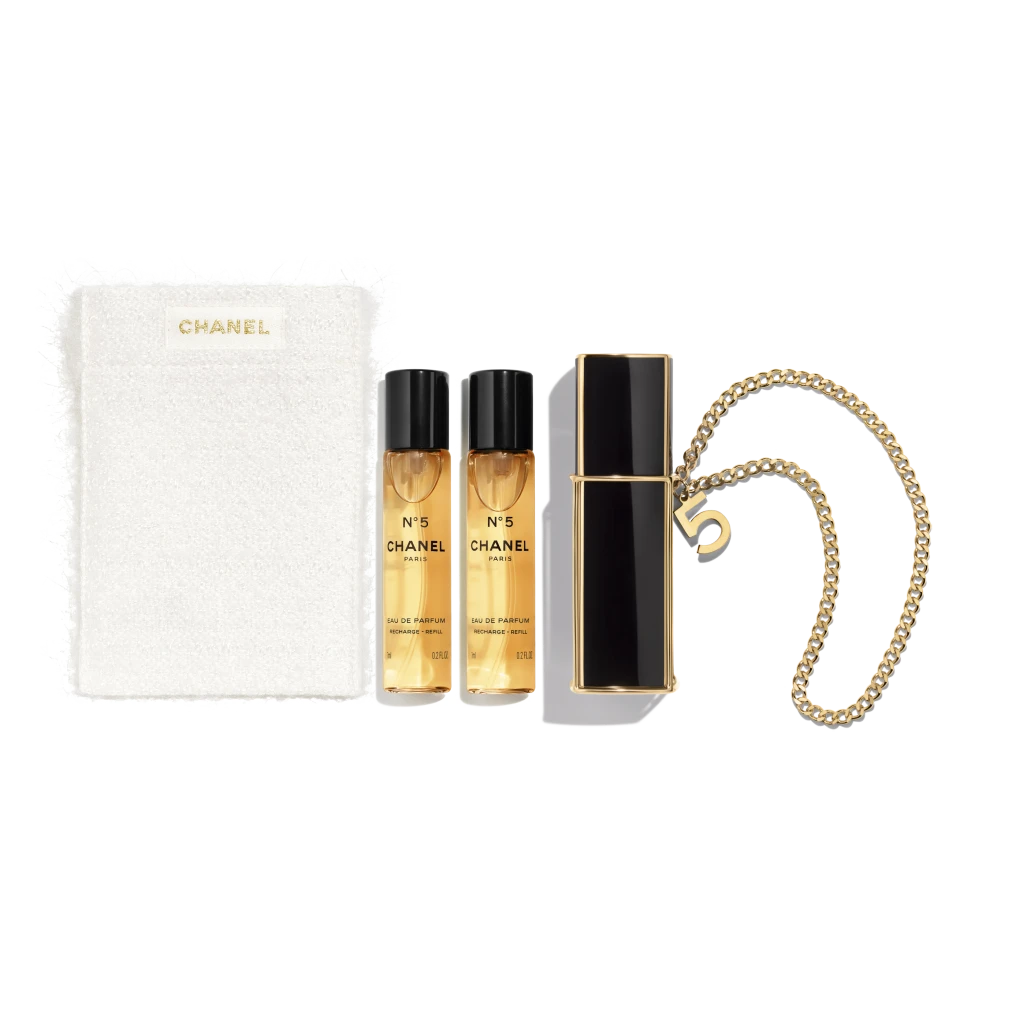 N°5奇幻雪白隨行系列同樣吸睛,為「N°5清新晨露淡香水」與「N°5典藏香水」,打造揉合珠寶鍊帶的精緻隨身瓶設計,鍊帶上並點綴有代表幸運的數字「5」,賦香之餘還能當作飾品配戴。