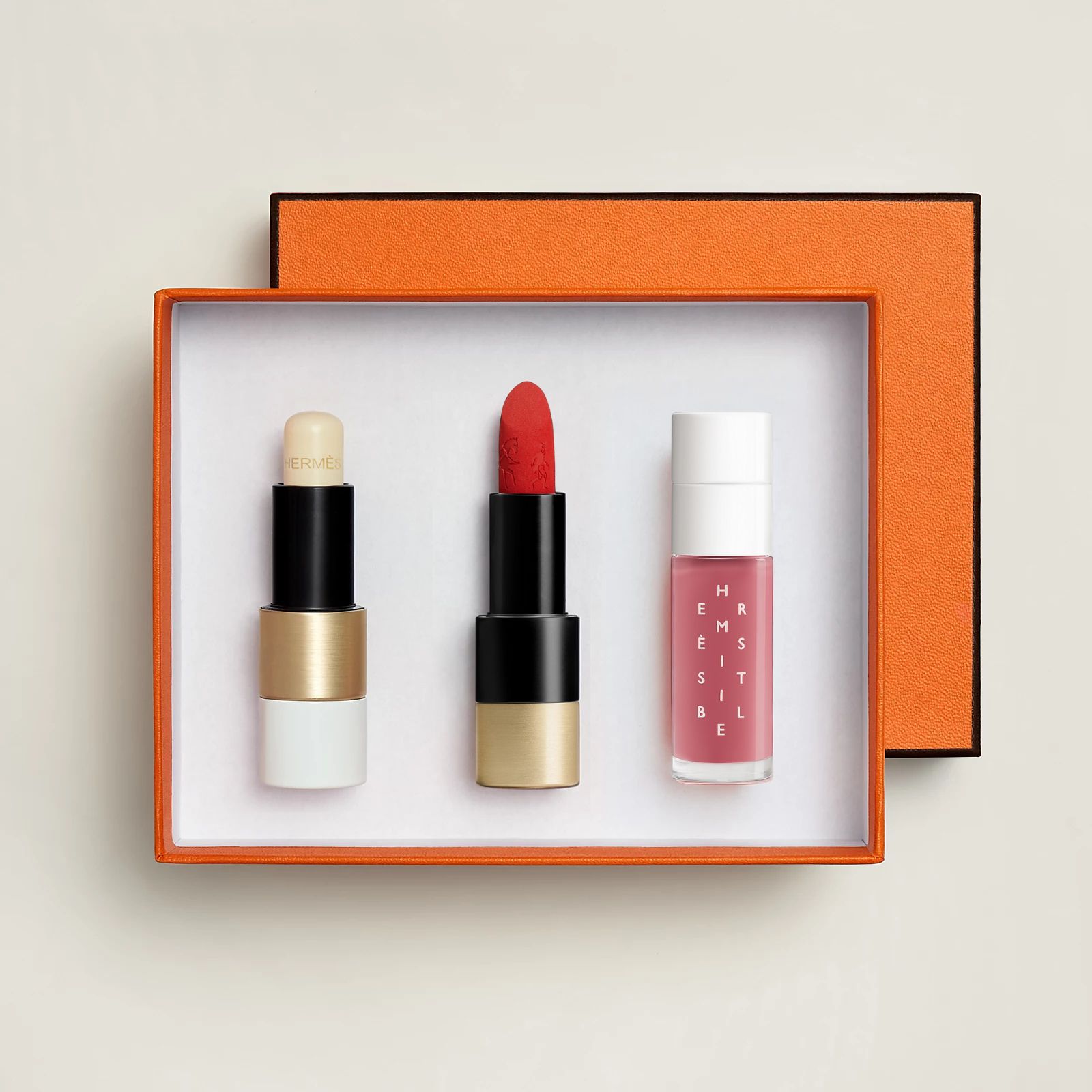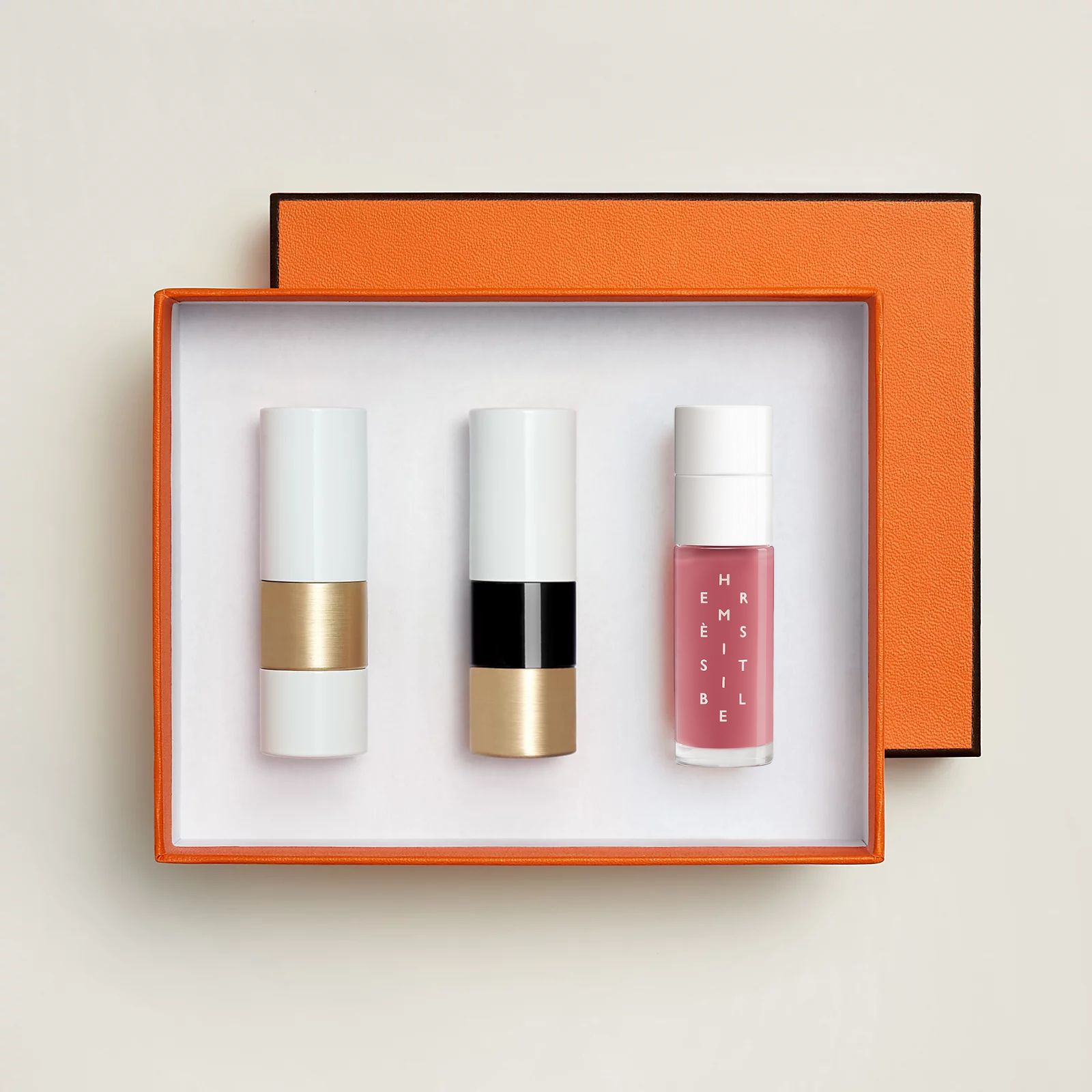 Hermès 愛馬仕彩妝 Rouge唇膏三入禮盒 護唇膏#透明/限量唇膏霧面#75/唇油#05 - 精選禮盒/專櫃緞帶包裝