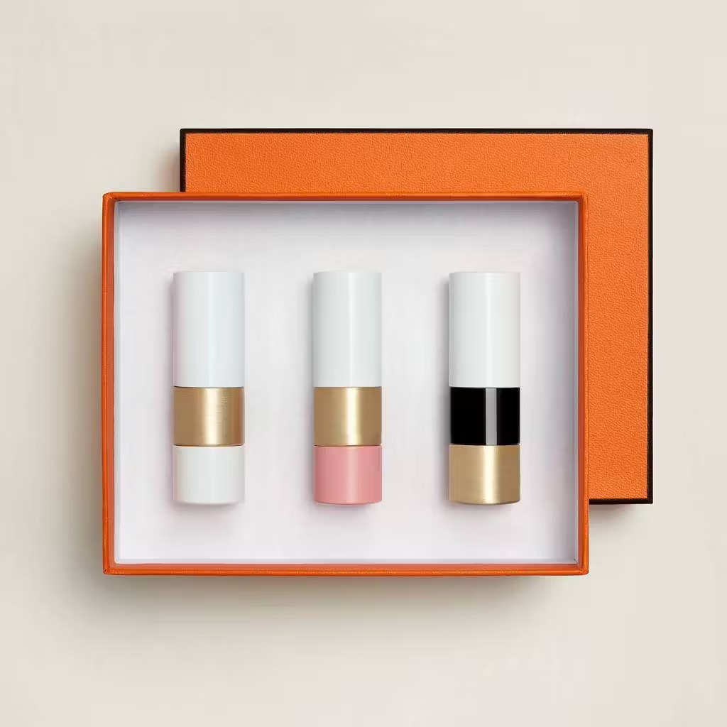 Hermès 愛馬仕彩妝 Rouge唇膏三入禮盒 護唇膏#透明/#49蜜桃烏龍/#19蜜桃粉 - 精選禮盒/專櫃緞帶包裝