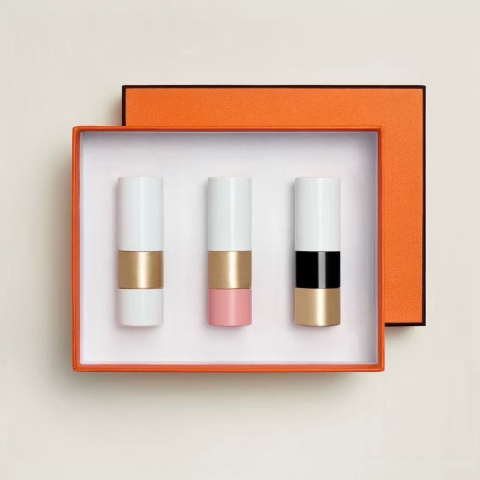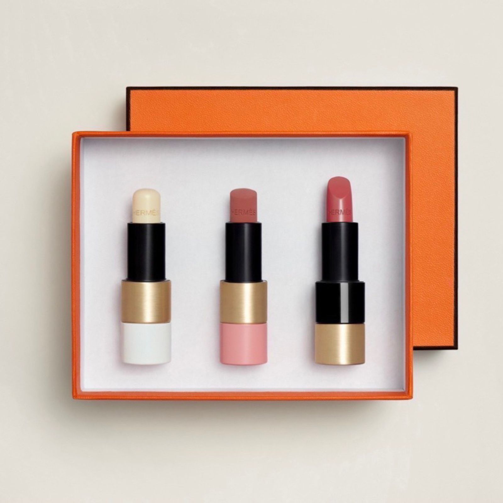 Hermès 愛馬仕彩妝 Rouge唇膏三入禮盒 護唇膏#透明/#49蜜桃烏龍/#21蜜桃豆沙 - 精選禮盒/專櫃緞帶包裝