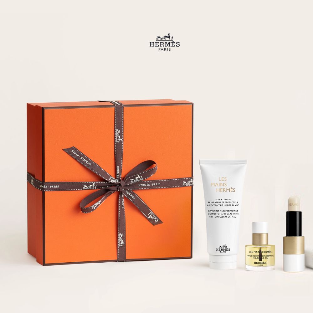 Hermès 愛馬仕香氛 秋冬滋潤禮盒 指緣油/護手霜/護唇膏附束口袋 - 精選禮盒/專櫃緞帶包裝