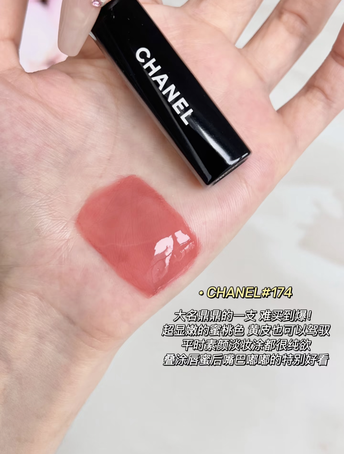 #174草莓慕斯:清淡薄透的粉嫩色,溫柔淡雅,很適合日常或素顏擦!白皮推薦購入!純色深的不建議喔!