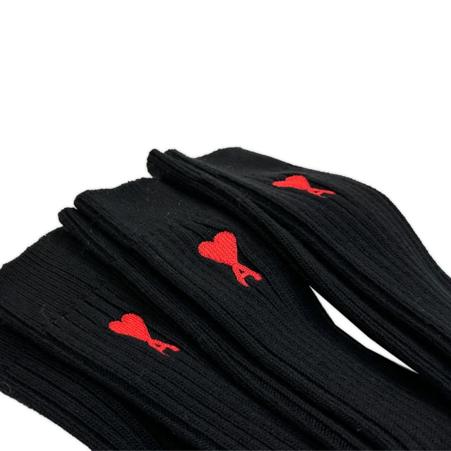 【AMI PARIS】經典愛心刺繡LOGO 三雙組 棉質 襪子 中筒襪 小腿襪