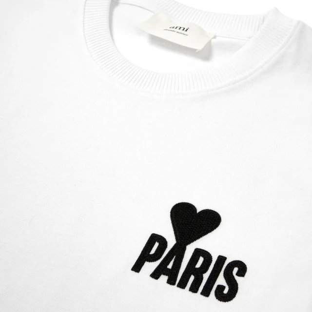 【AMI PARIS】經典愛心刺繡LOGO 白色棉質 圓領 短袖