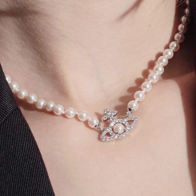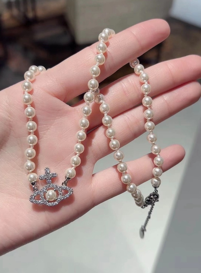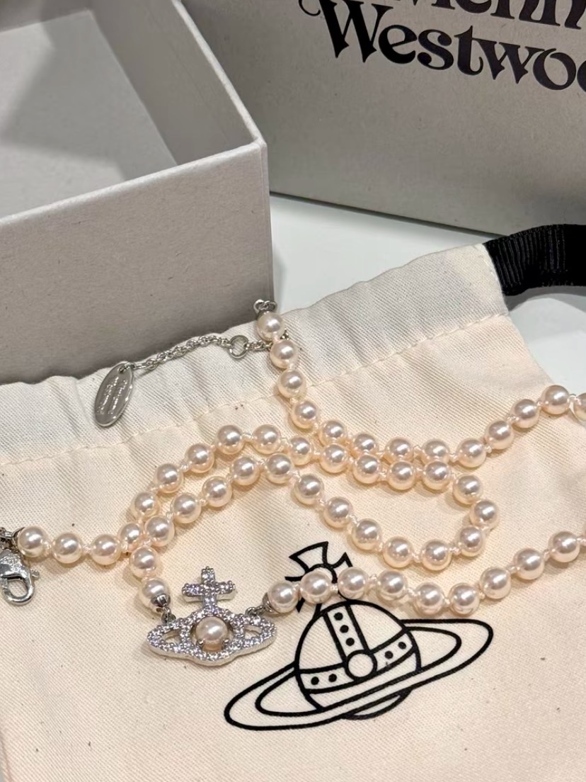<張員瑛同款> VIVIENNE WESTWOOD 西太后 十字水晶 珍珠項鍊