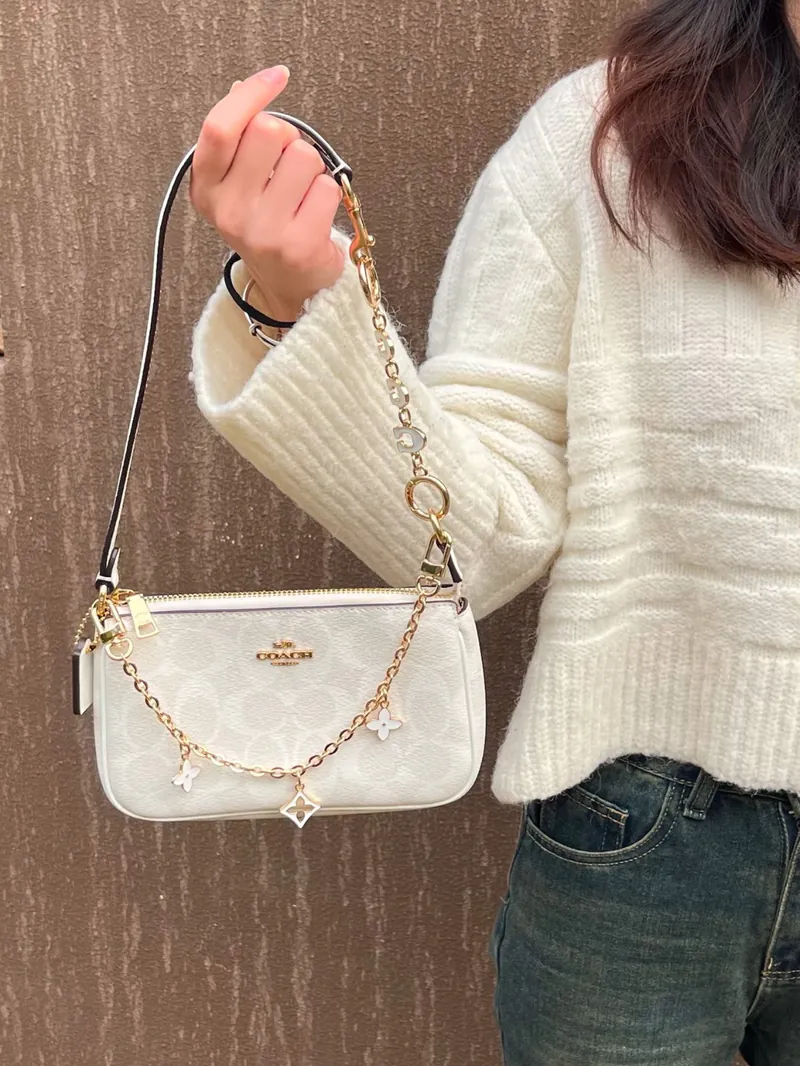 COACH NOLITA 復古經典老花印花 麻將包 冰川白