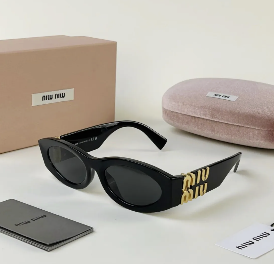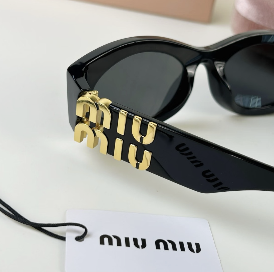MIU MIU經典橢圓 黑金墨鏡