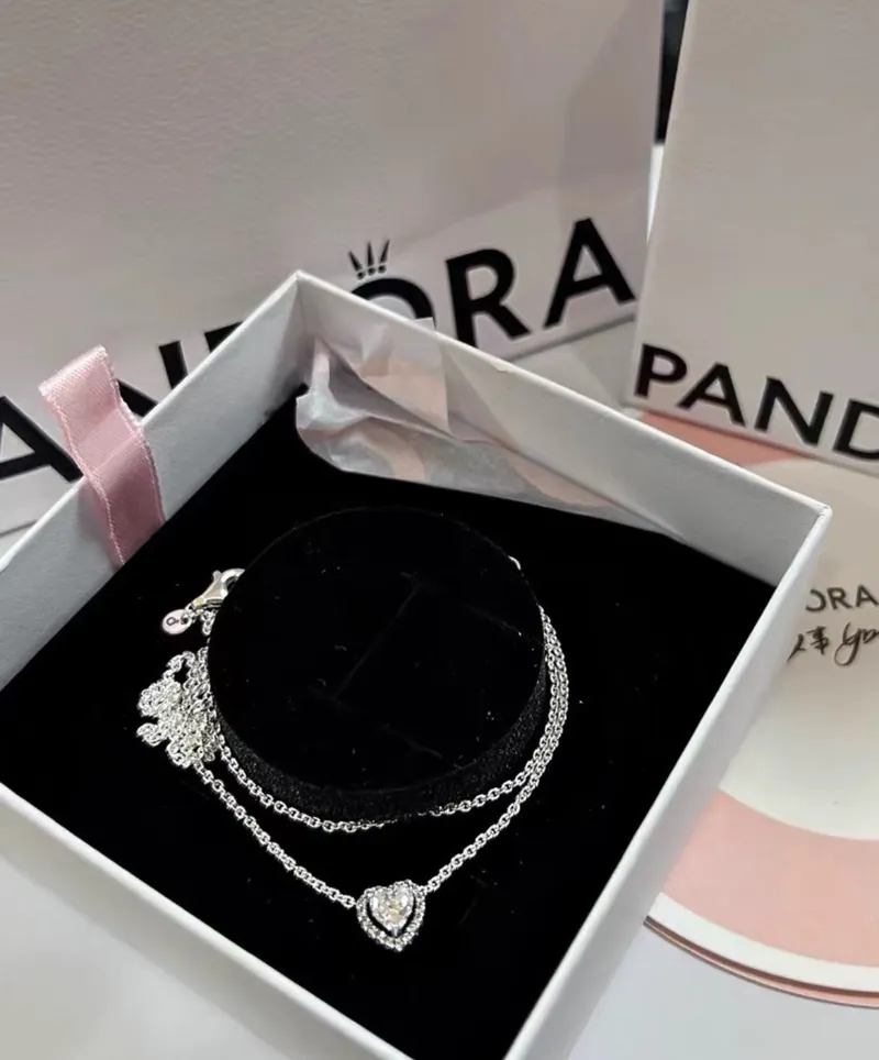 PANDRORA 潘多拉 愛心鑽石 925銀 項鍊